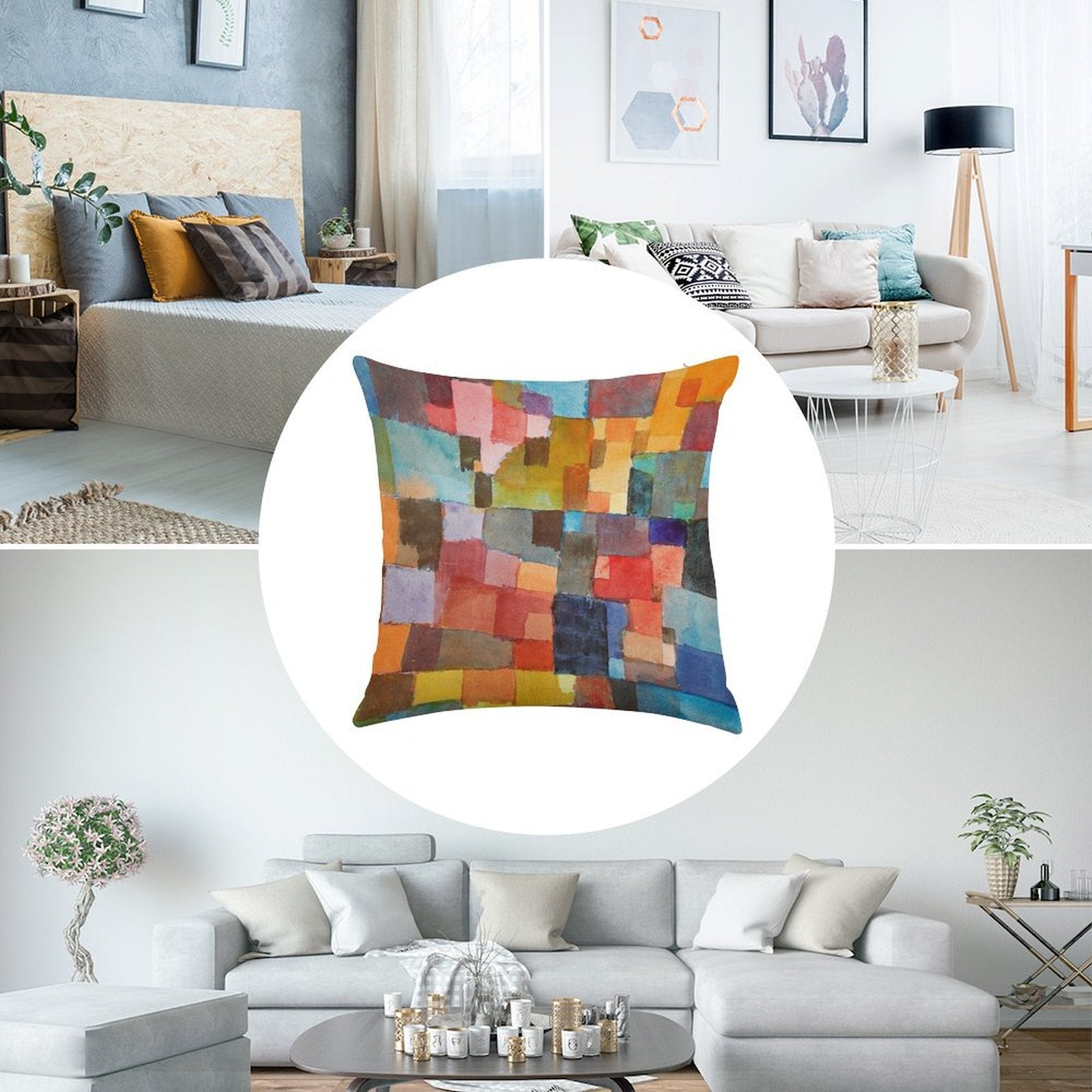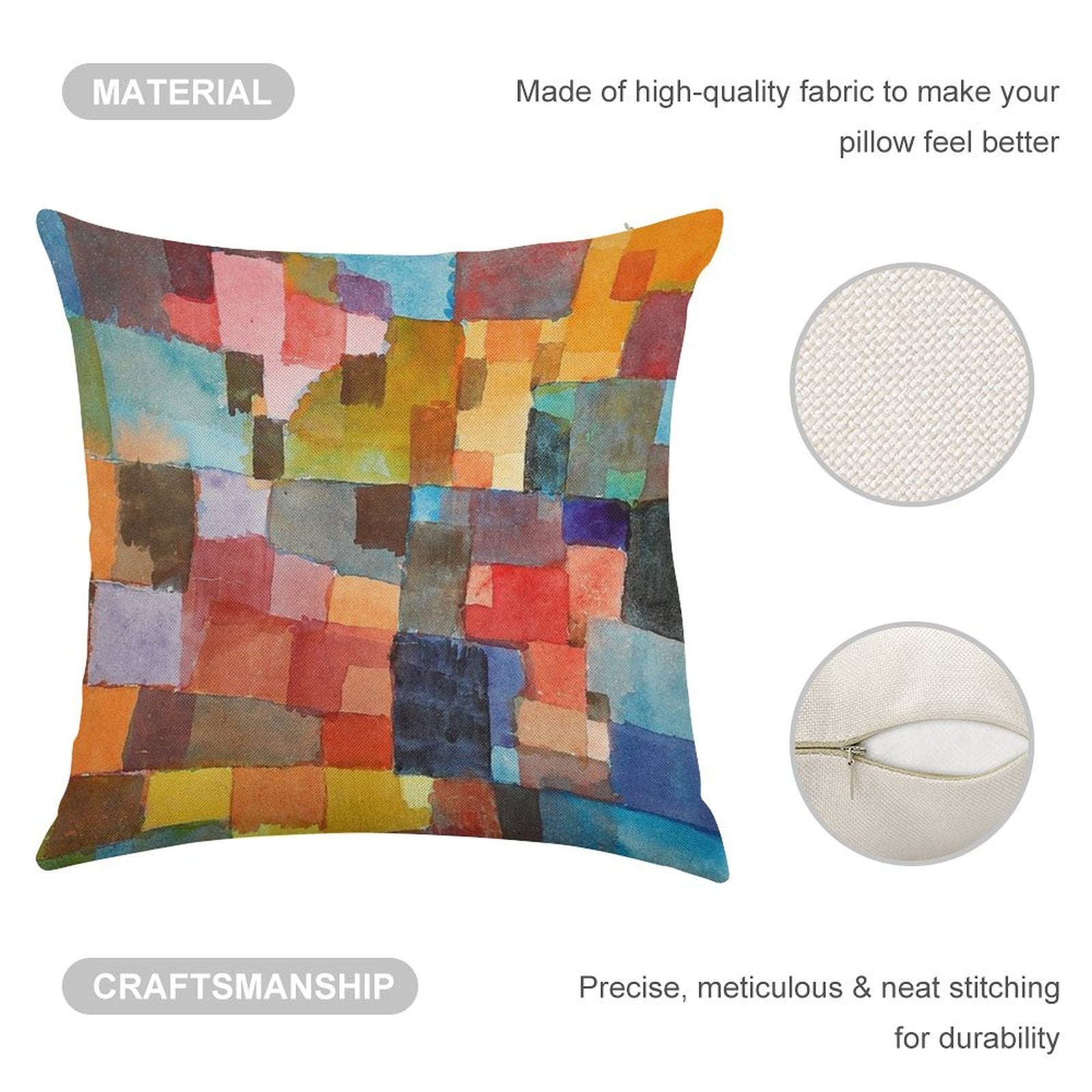 - Machine or hand washable (max 45°C). Avoid bleach and prolonged soaking to preserve the vibrant texture of your Raumarchitekturen, Paul Klee Luxury Pillow Cover.