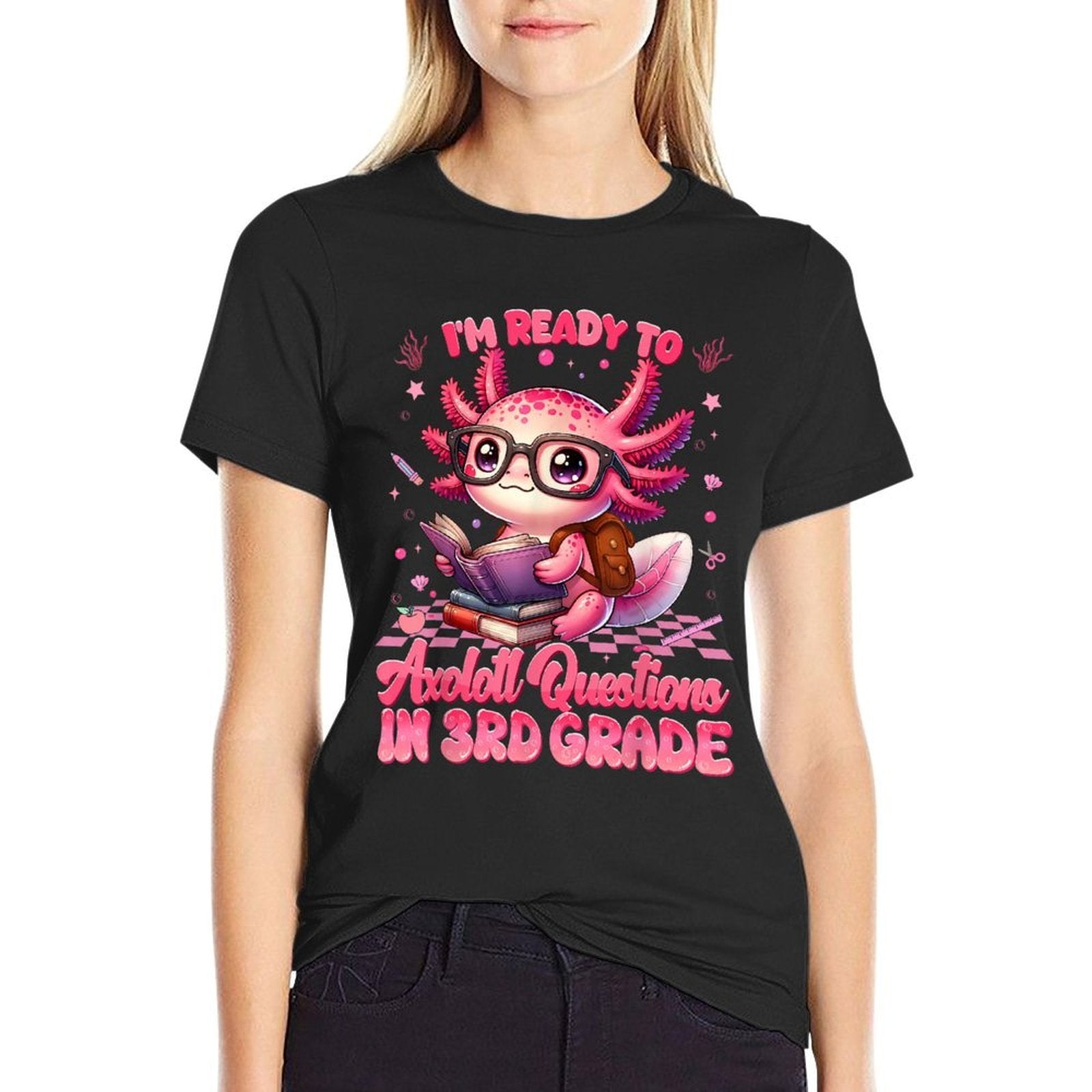 - Avoid bleach to preserve the Ready To 3rd Grade Axolotl Question First Day Of School Girl T-shirt’s bold graphics and cotton integrity.