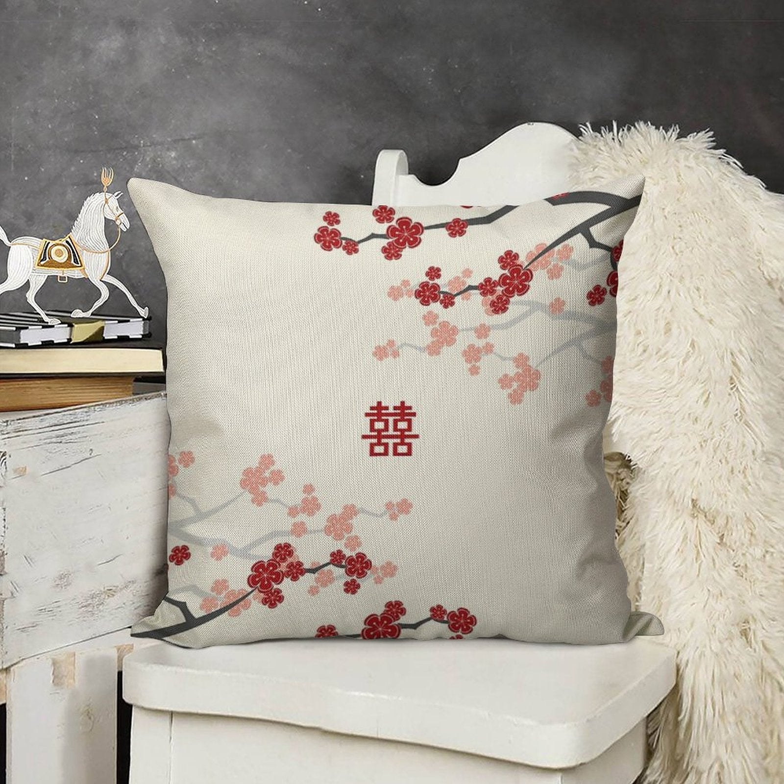 - Machine or hand washable (max 45°C). Avoid bleach and prolonged soaking to preserve the vibrant texture of your Red Oriental Cherry Blossoms on Ivory And Chinese Wedding Double Happiness Japanese Sakura © Fatfatin Luxury Pillow Cover.