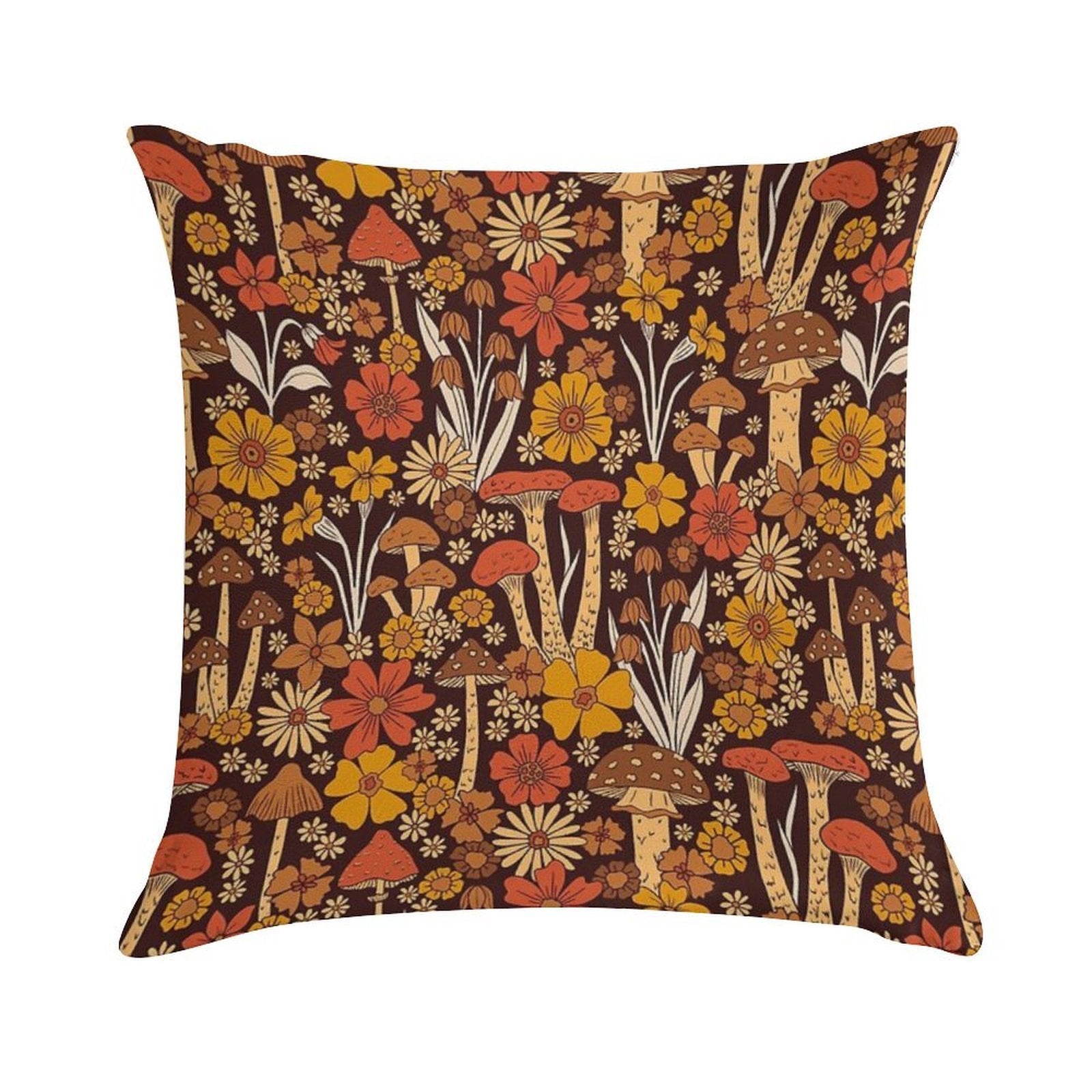 Retro 1970s Brown & Orange Mushrooms & Flowers Soft Anti-Pilling Throw Pillow