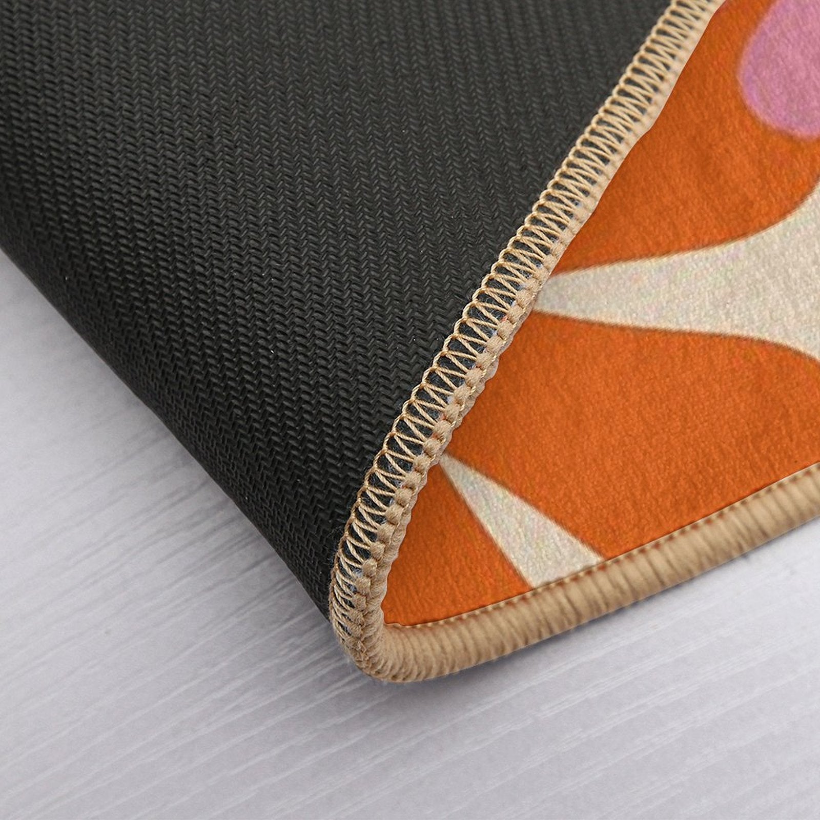 - Non-slip rubber backing grips floors securely, ideal for Retro 60s 70s Flowers - Vintage Style Floral Pattern in Thulian Pink, Orange, Mustard, And Cream Mat placements on tiles, wood, or marble.