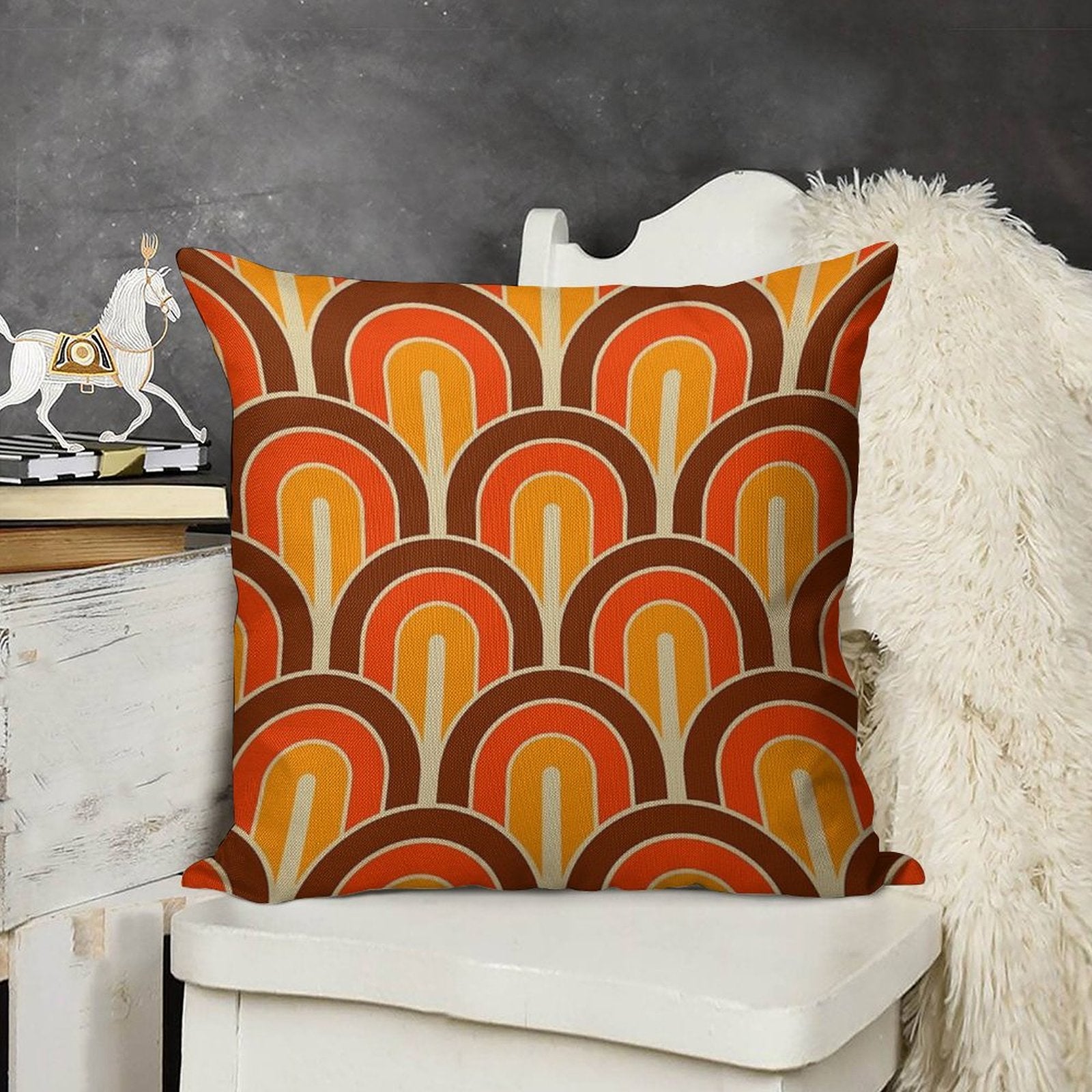 - Machine or hand washable (max 45°C). Avoid bleach and prolonged soaking to preserve the vibrant texture of your Retro Gradated Geometric Fan Pattern 821 Luxury Pillow Cover.