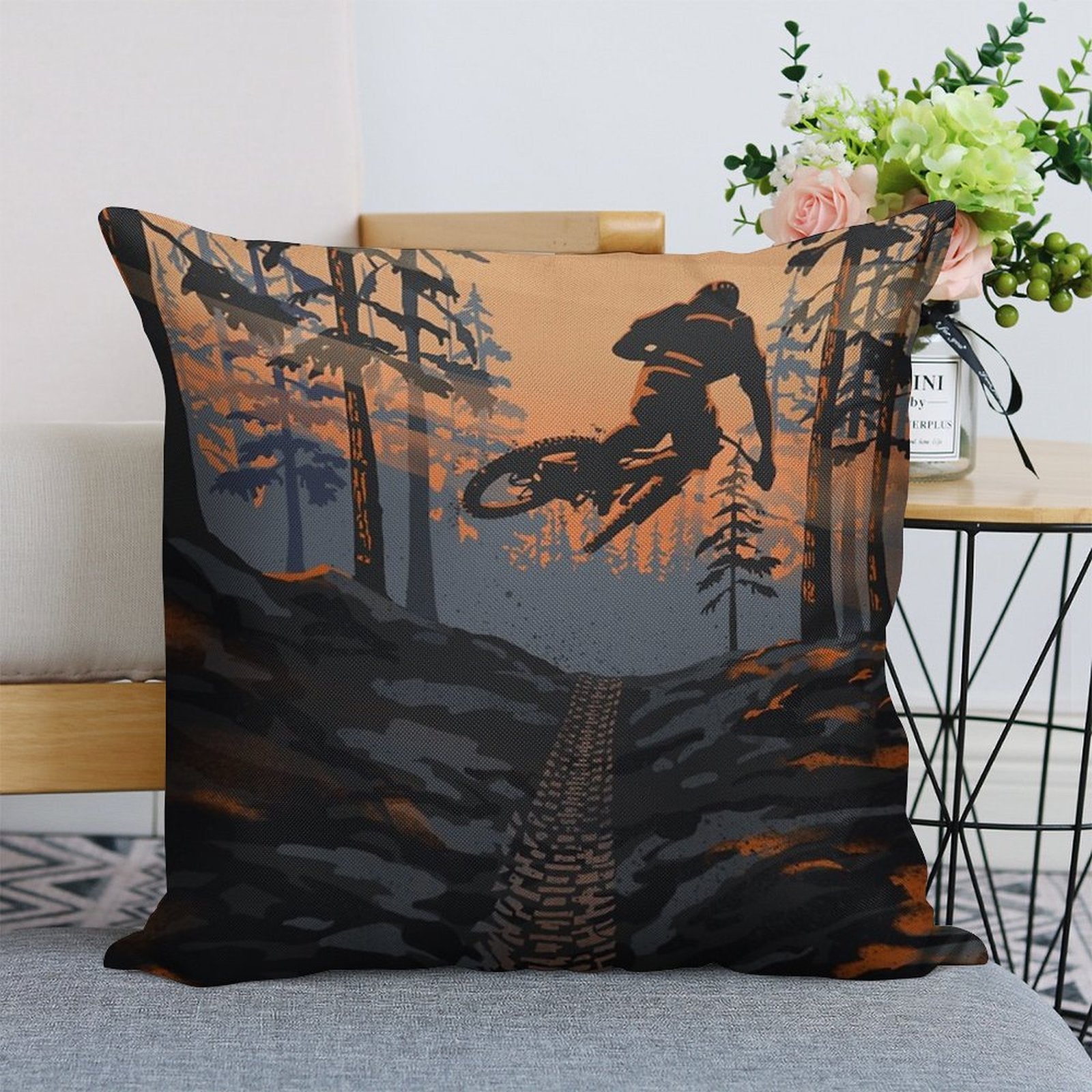 Retro Styled Mountain Biking Dirt Jumper Sunset Linen Throw Pillow Cover