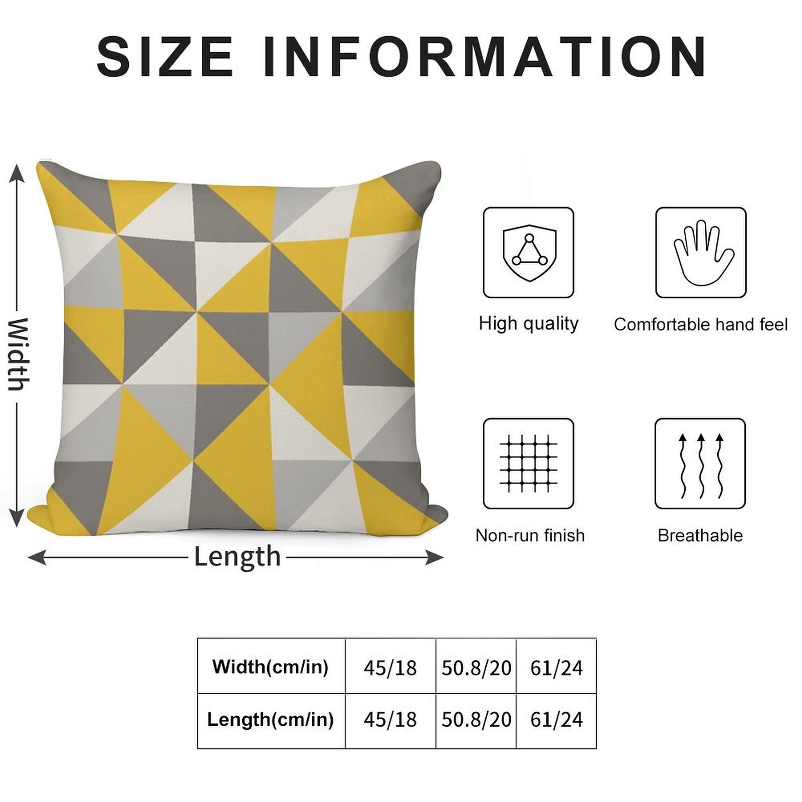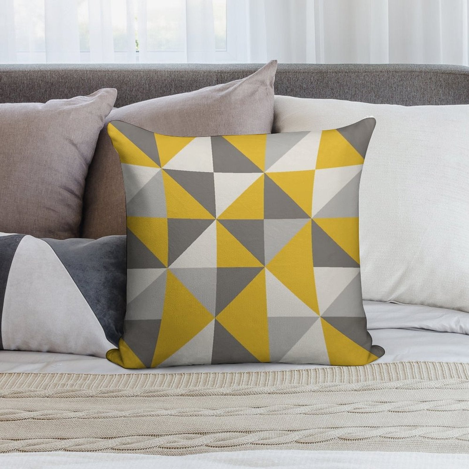 - Reinforced stitching along the edges prevents fraying and extends the life of your Retro Triangle Design in Yellow And Grey Pillowcase.