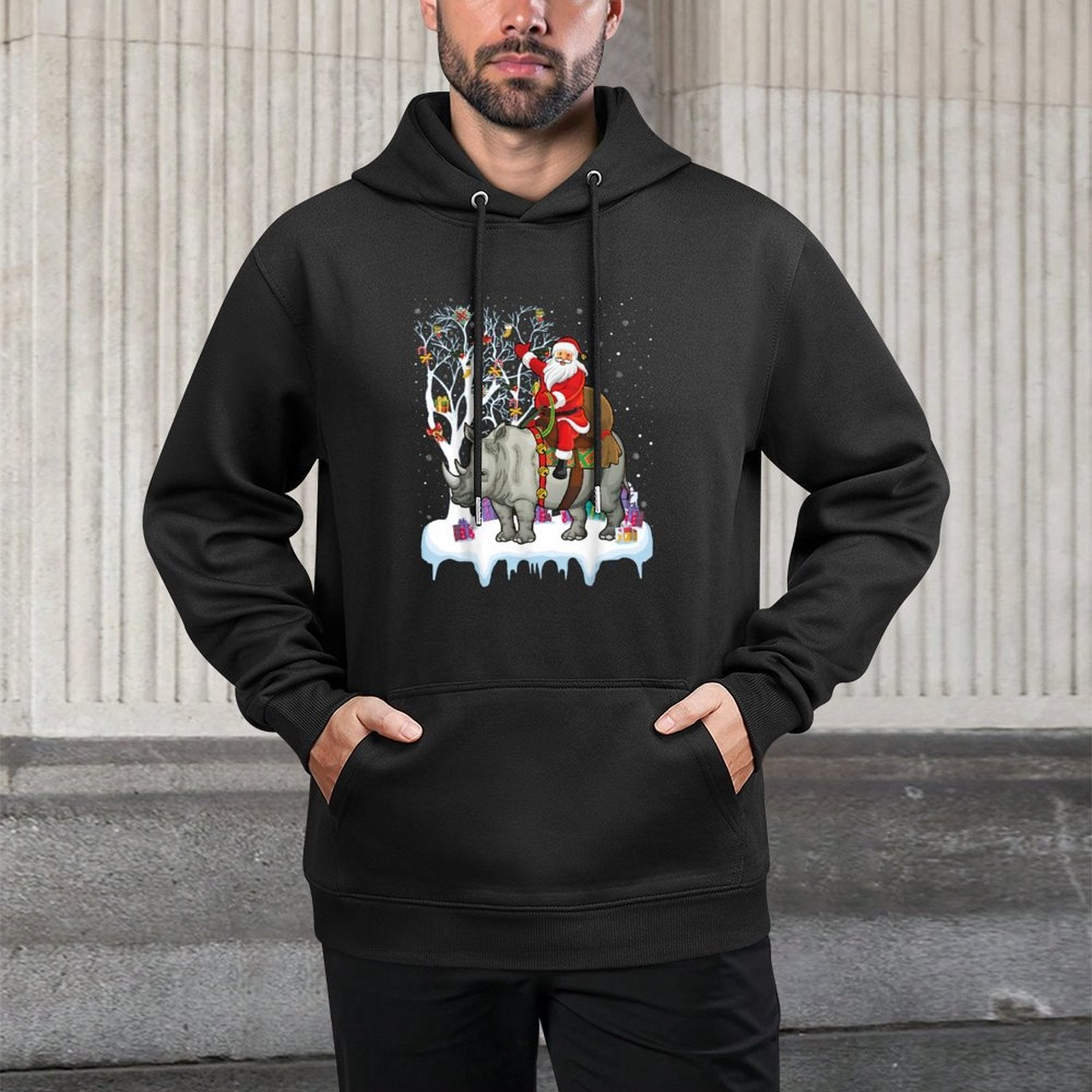 Rhinoceros Lover Xmas Gift Santa Riding Rhino Christmas Durable Construction Hoodie