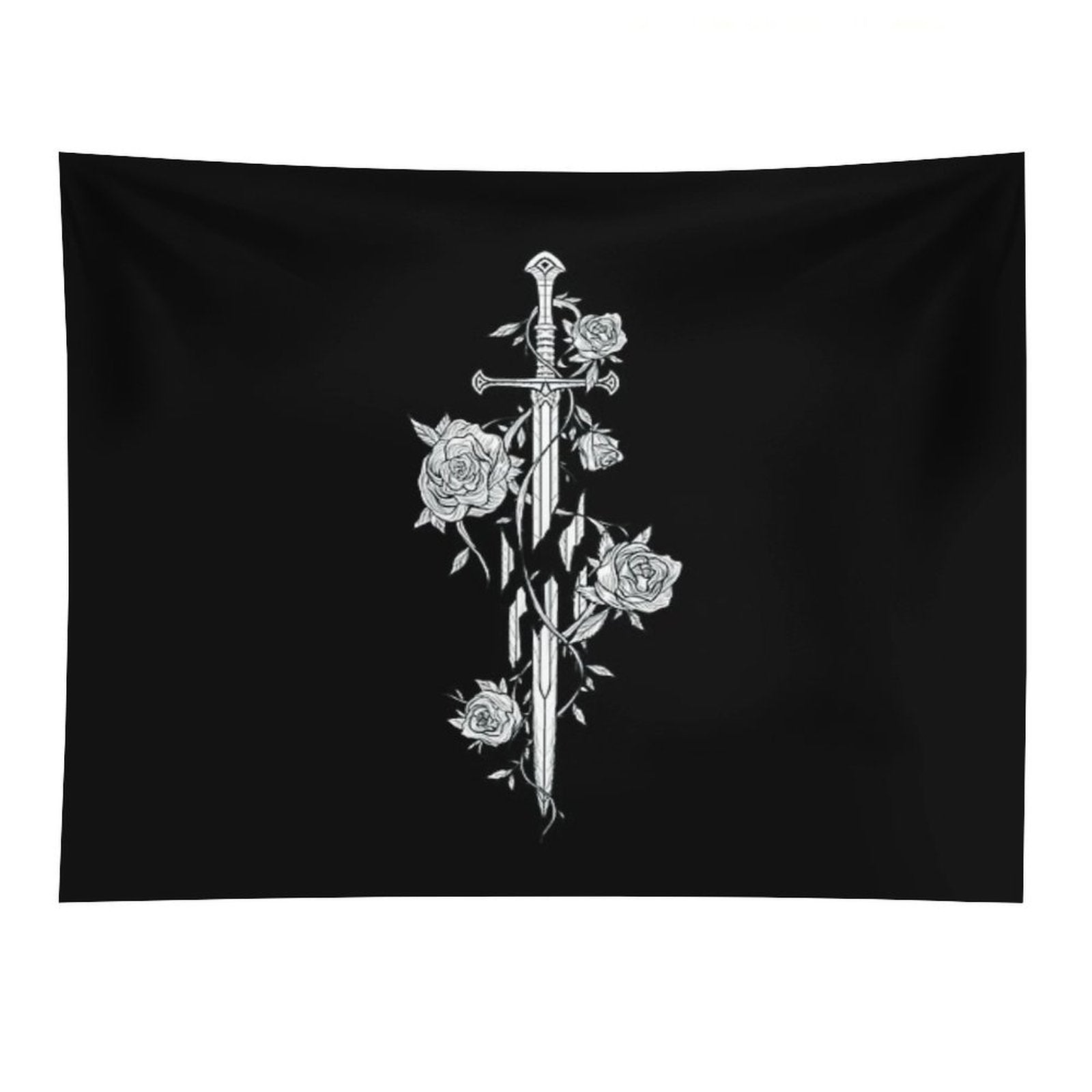 BionZax's Roses of The Broken Sword Tapestry for Bedroom, College Dorm. Roses of The Broken Sword Tapestry to decorate your bedroom, college dorm, living room, or kitchen wall, it is the best gift for funny, meme, aesthetic, trendy, simple, fashion, music, abstract, fantasy, modern tapestry for girls, men, boys, teen, women, kids.