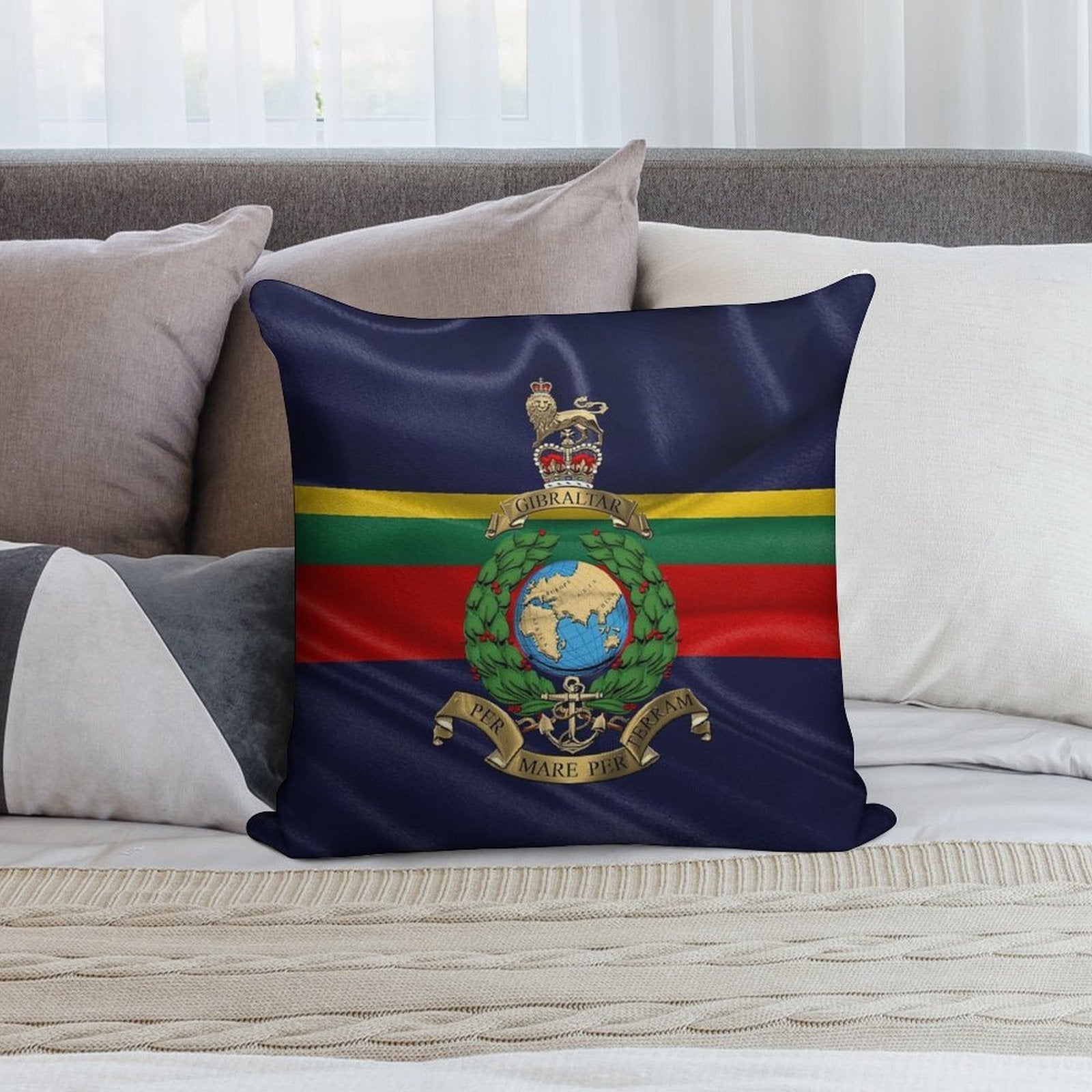 ✔️ Fits Any Style – Neutral tones and plush texture suit all Royal Marines - RM Badge over Royal Marine Flag decors.