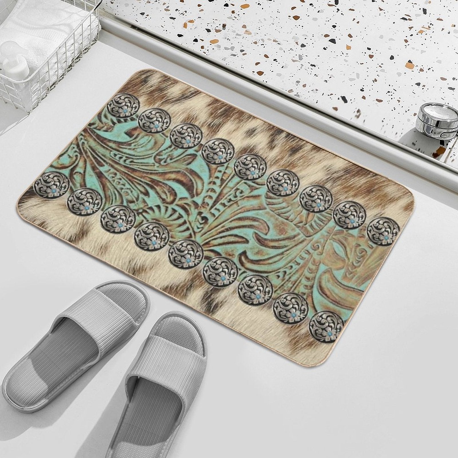 Rustic Brown Beige Teal Western Country Cowboy Fashion Bath Mat