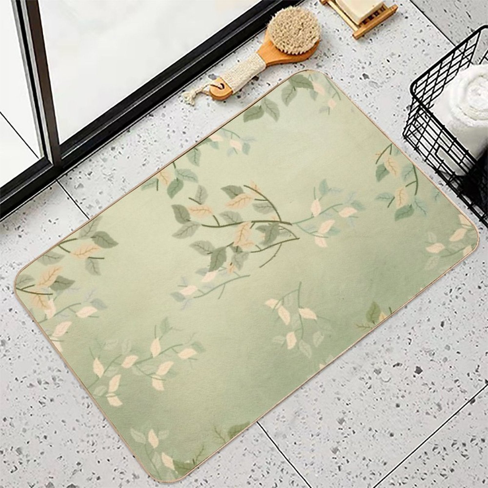 Sage Green Watercolor Woodland Leaves Bath Mat
