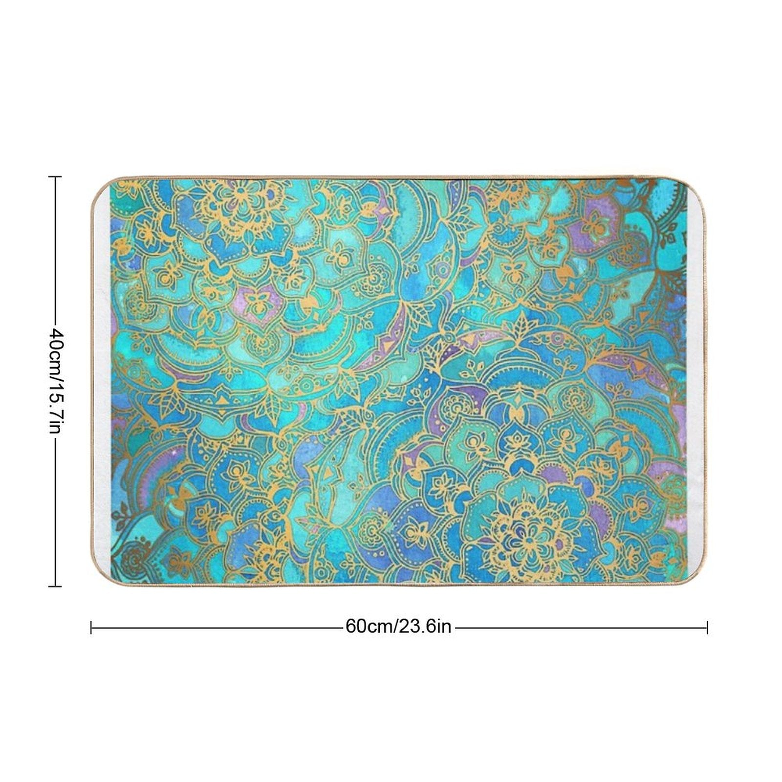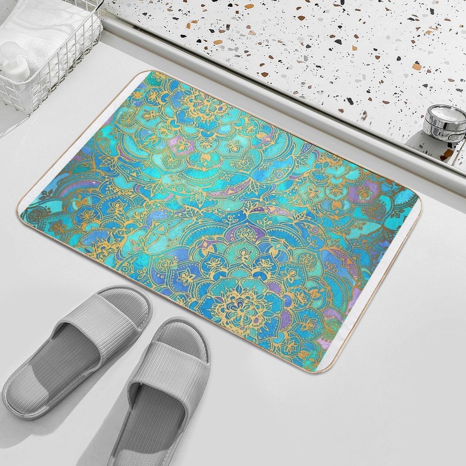 - Use as a vanity rug, guest suite accent, or mudroom defender – the Sapphire & Jade Stained Glass Mandalas Mat adapts to any space.