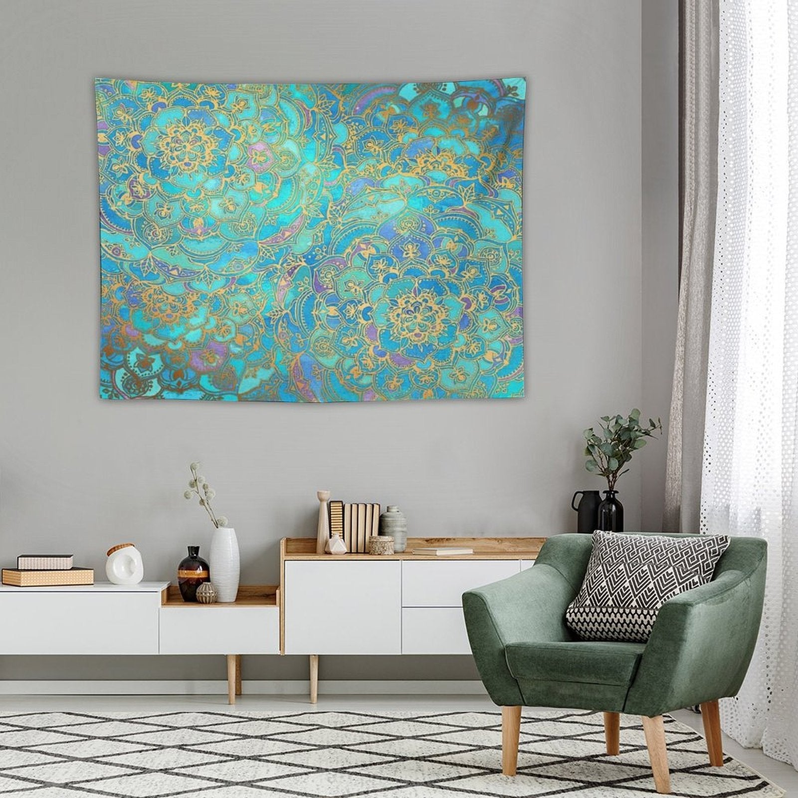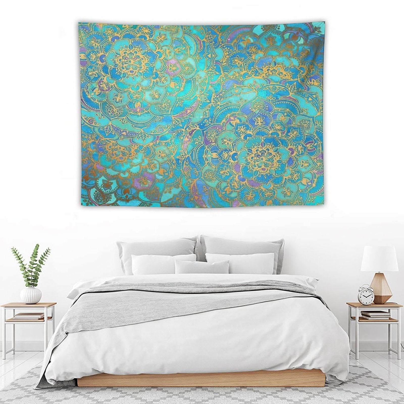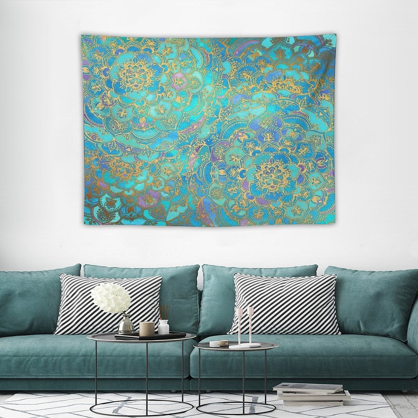 💓【MULTI-FUNCTION】 Used "Sapphire & Jade Stained Glass Mandalas Tapestry" to decorate your bedroom, college dorm, room, living room, kitchen wall, can be used as tapestry or wall hanging, bedspread, tablecloth, dormitory decoration, beach shawl, tablecloth, etc.