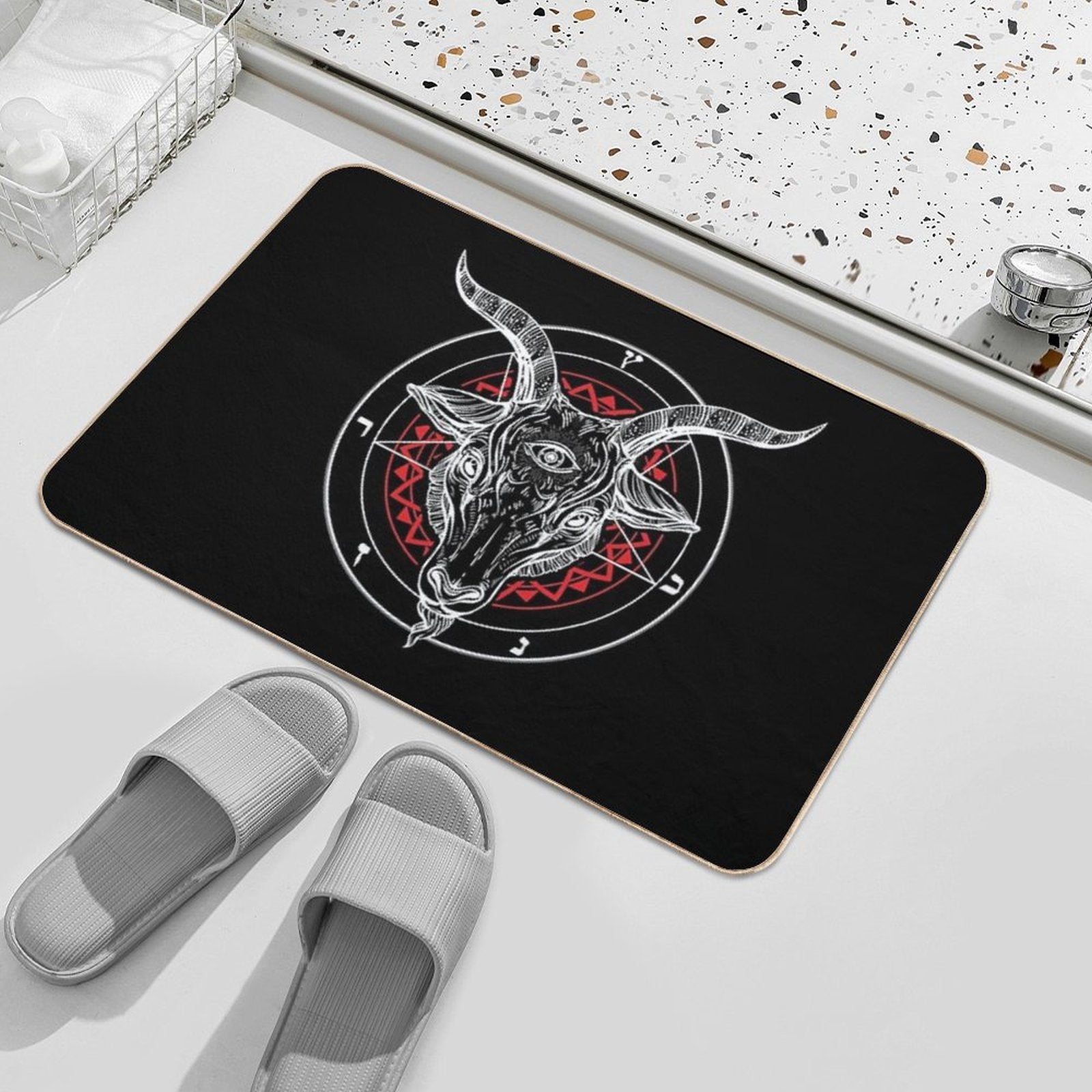 - Use as a vanity rug, guest suite accent, or mudroom defender – the Satanic Goat Baphomet Circle Satan Symbol Lucifer Devil Mat adapts to any space.