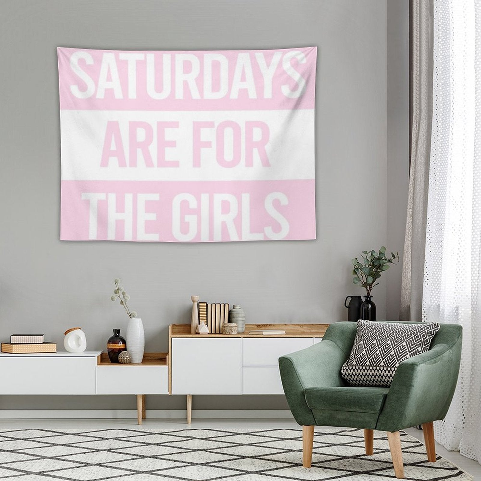 BionZax's Saturdays Are for The Girls Pink Tapestry for Bedroom, College Dorm. Saturdays Are for The Girls Pink Tapestry to decorate your bedroom, college dorm, living room, or kitchen wall, it is the best gift for funny, meme, aesthetic, trendy, simple, fashion, music, abstract, fantasy, modern tapestry for girls, men, boys, teen, women, kids.