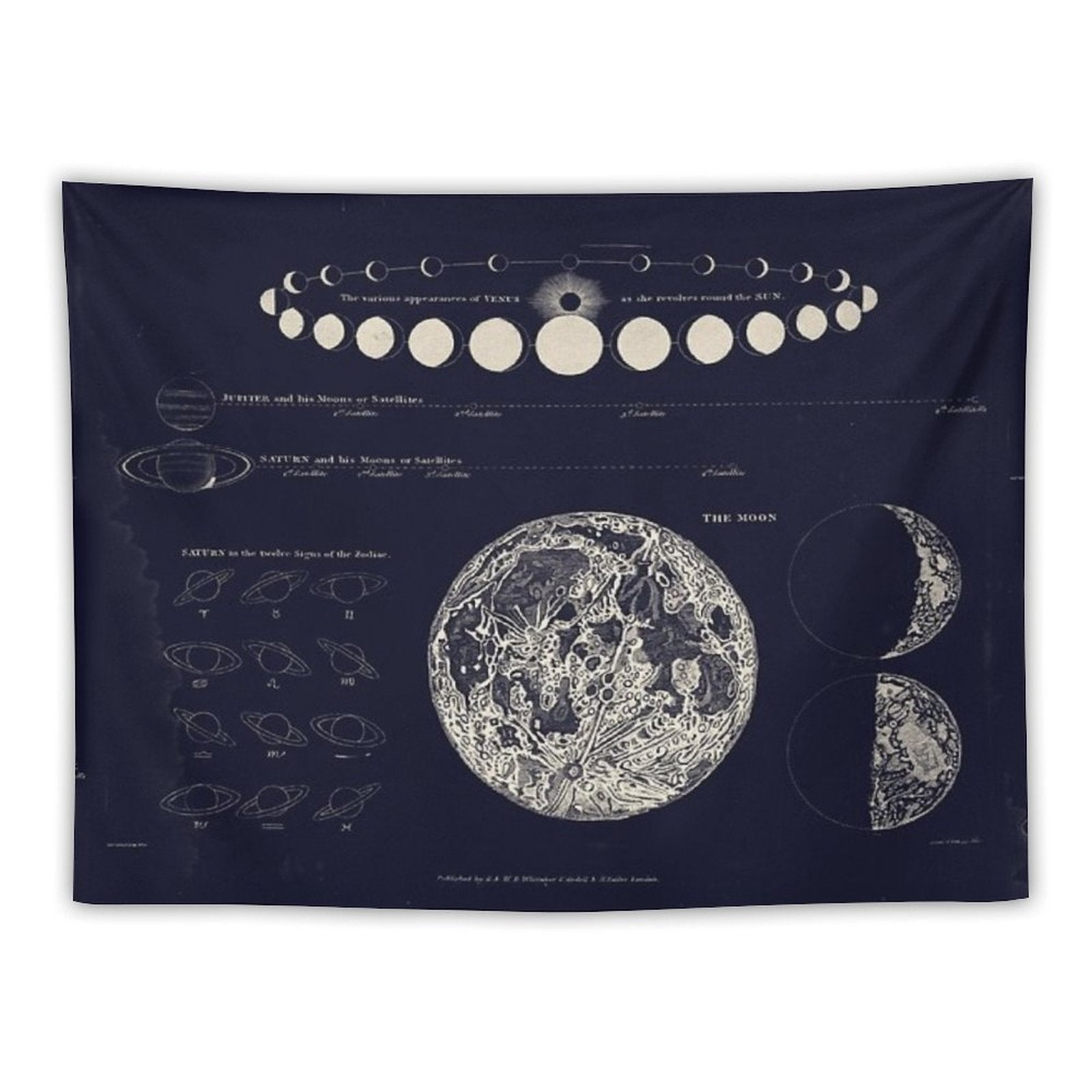 💓【MULTI-FUNCTION】 Used "Saturn, Venus & Moon Astronomy Chart Tapestry" to decorate your bedroom, college dorm, room, living room, kitchen wall, can be used as tapestry or wall hanging, bedspread, tablecloth, dormitory decoration, beach shawl, tablecloth, etc.