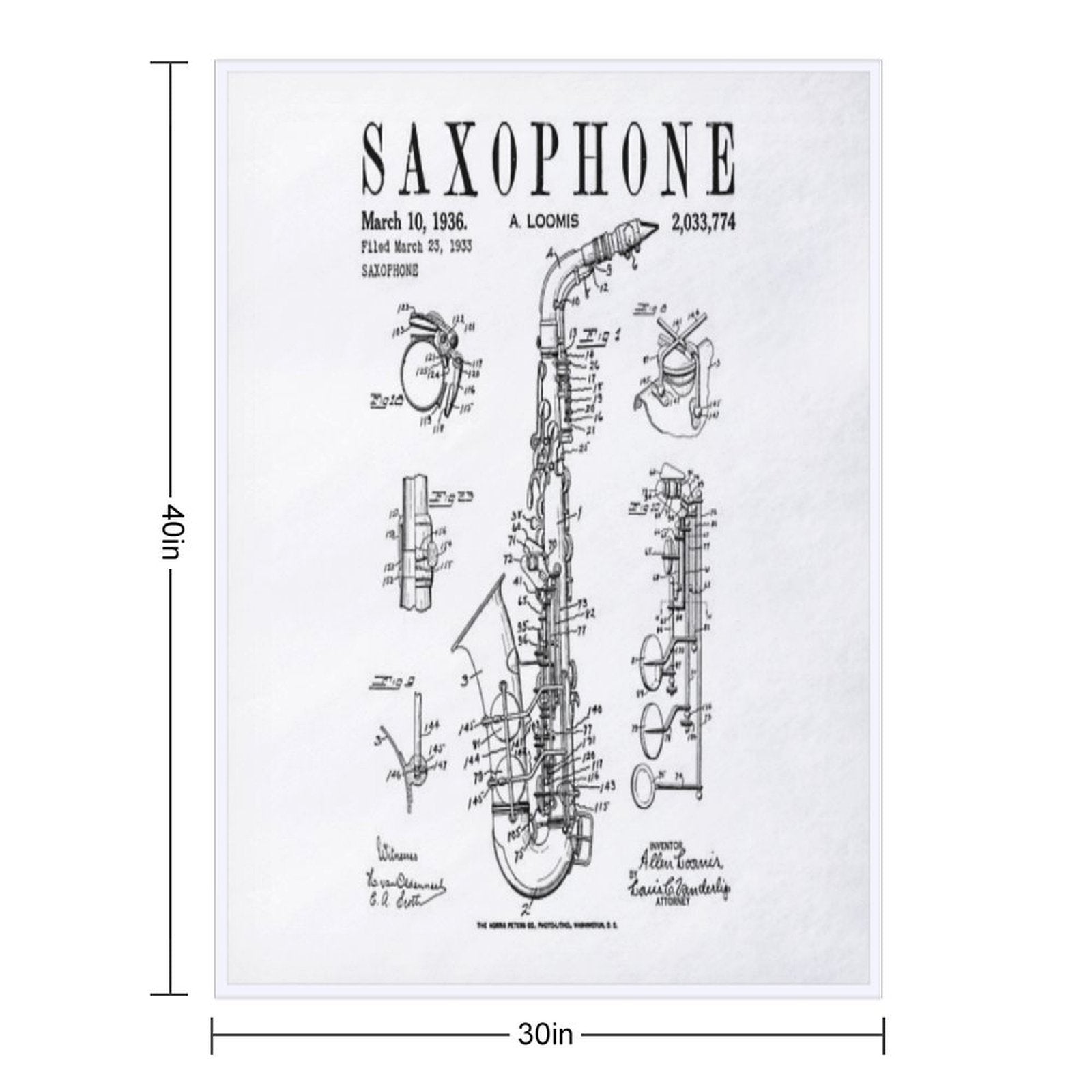 Saxophone Old Vintage Patent Drawing Print Blanket Size Chart: