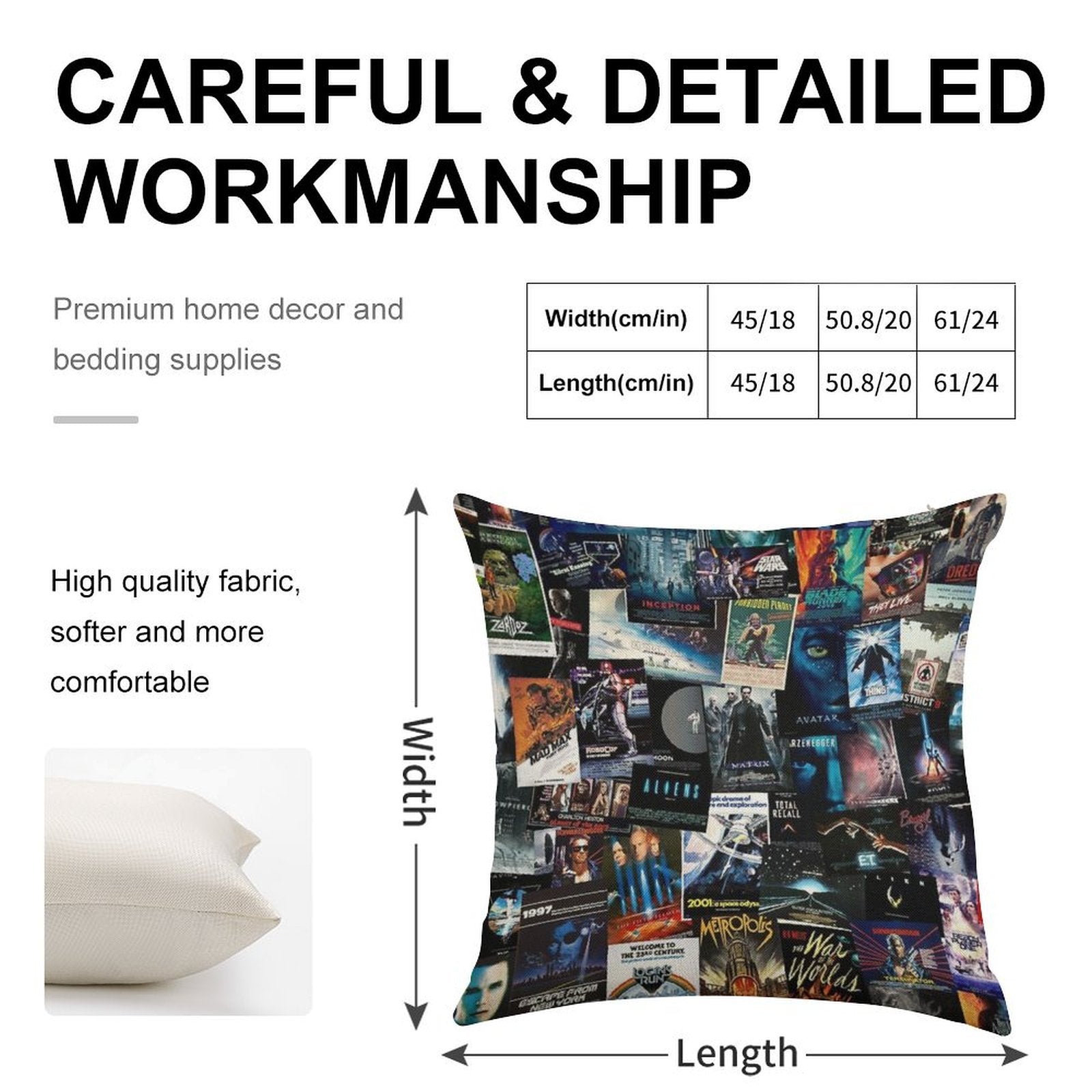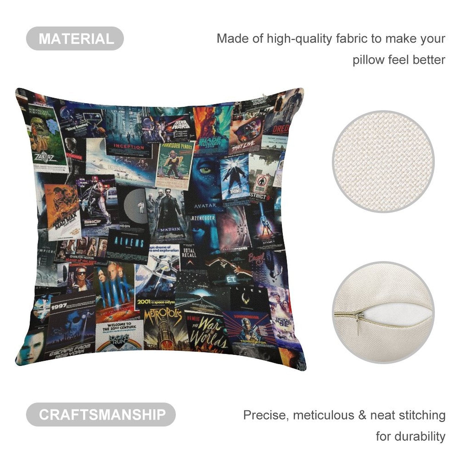 - Machine or hand washable (max 45°C). Avoid bleach and prolonged soaking to preserve the vibrant texture of your Sci-Fi Movie Posters Luxury Pillow Cover.