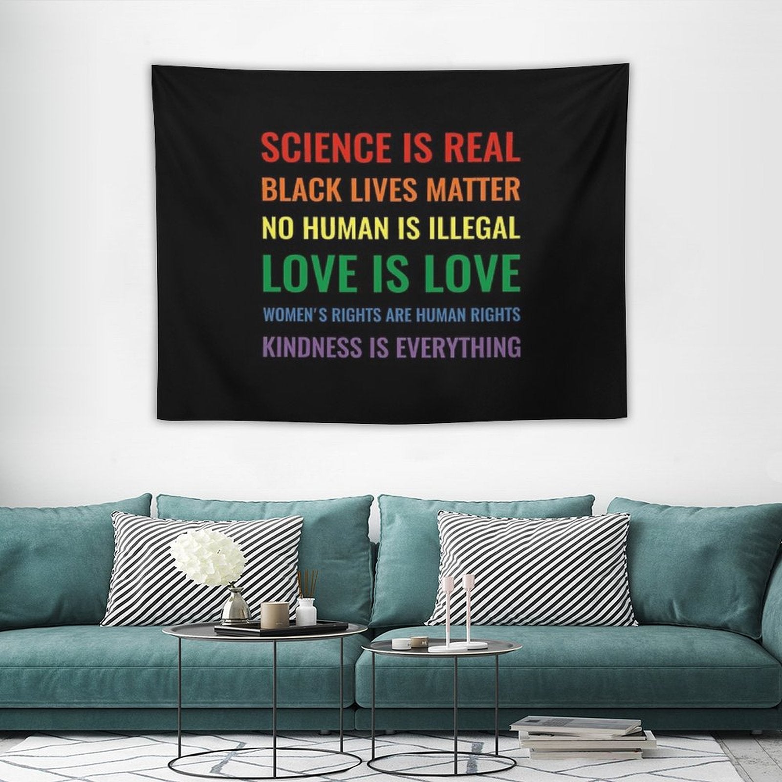 Science Is Real! Black Lives Matter! No Human Is Illegal! Love Is Love! Women's Rights Are Human Rights! Kindness Is Everything! Tapestry