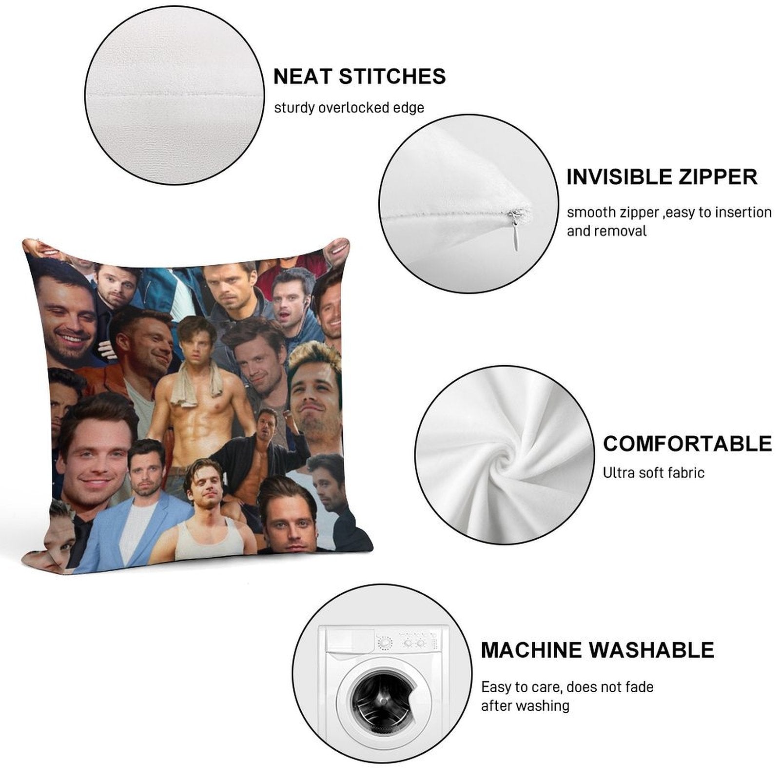 - Reinforced stitching along the edges prevents fraying and extends the life of your Sebastian Stan Photo Collage Pillowcase.