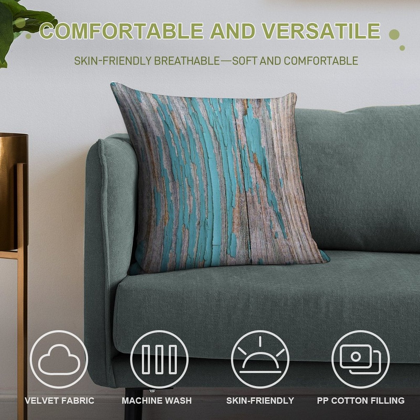 Shabby Rustic Weathered Wood Turquoise Soft Fade-Resistant Throw Pillow