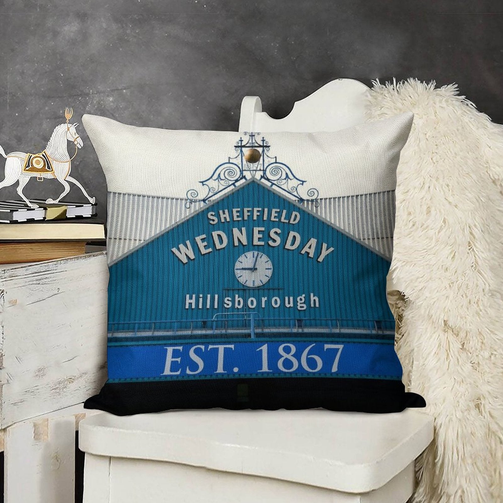 - Machine or hand washable (max 45°C). Avoid bleach and prolonged soaking to preserve the vibrant texture of your Sheffield Wednesday Famous Clock Luxury Pillow Cover.