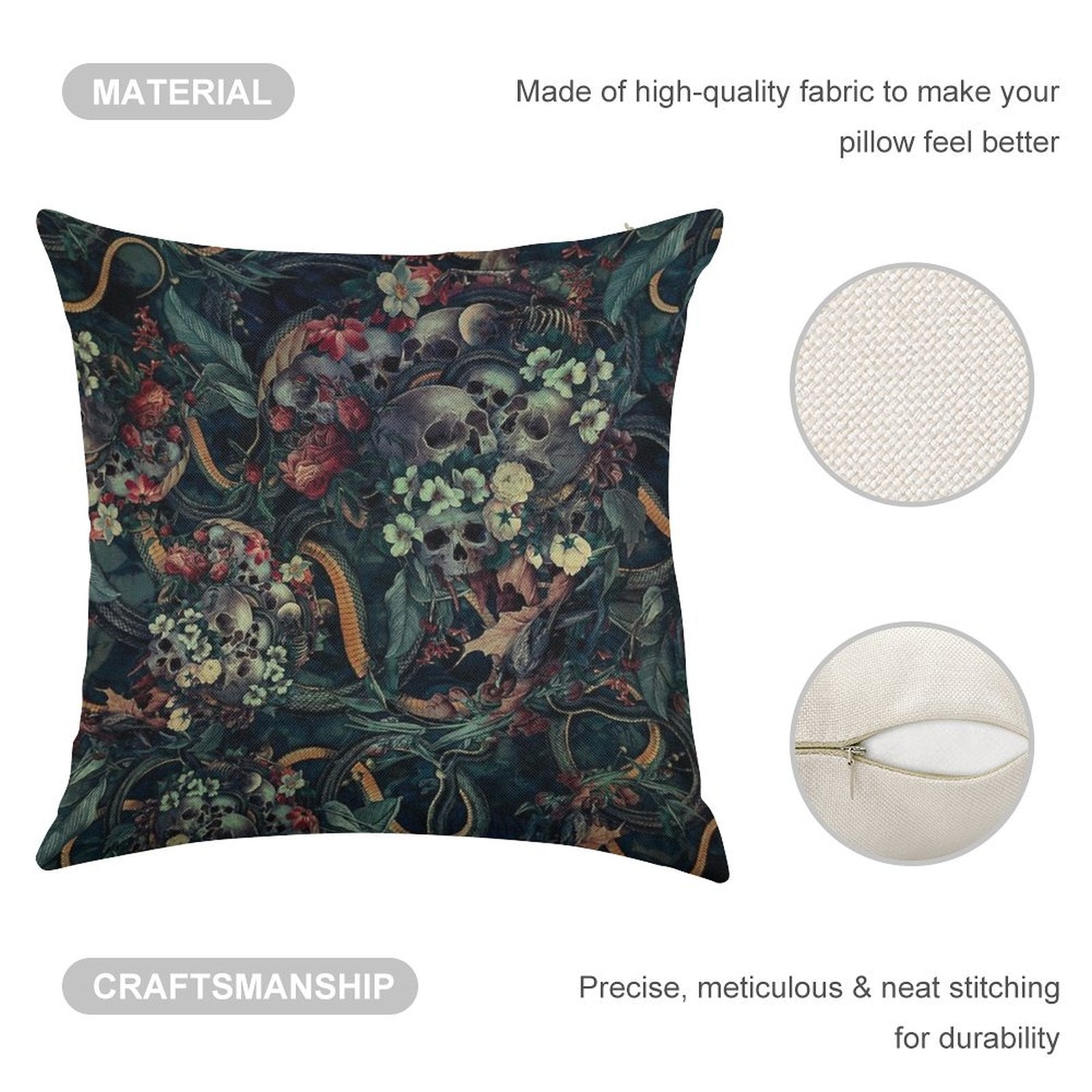 - Double-Stitched Edges: Precision stitching prevents fraying, stretching, and pilling, ensuring your Skulls And Snakes Linen Throw Pillow Cover stays pristine through countless uses.