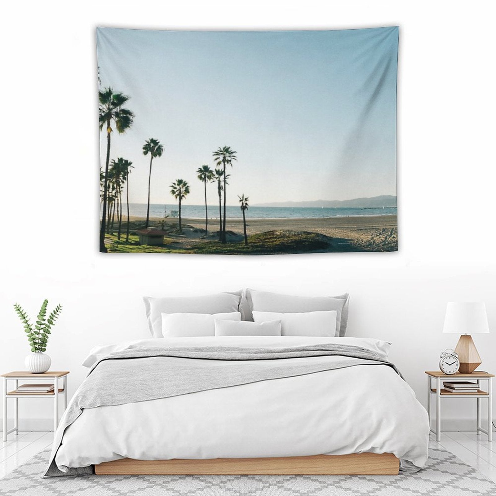 💕【ACCESSORY STRUCTURE】 "Southern California Palm Trees Tapestry" (lock edge), with 2 barb clips and 3 no trace nail hooks, the two ends of the wall blanket can be fixed on the wall, convenient installation, will not destroy the wall.