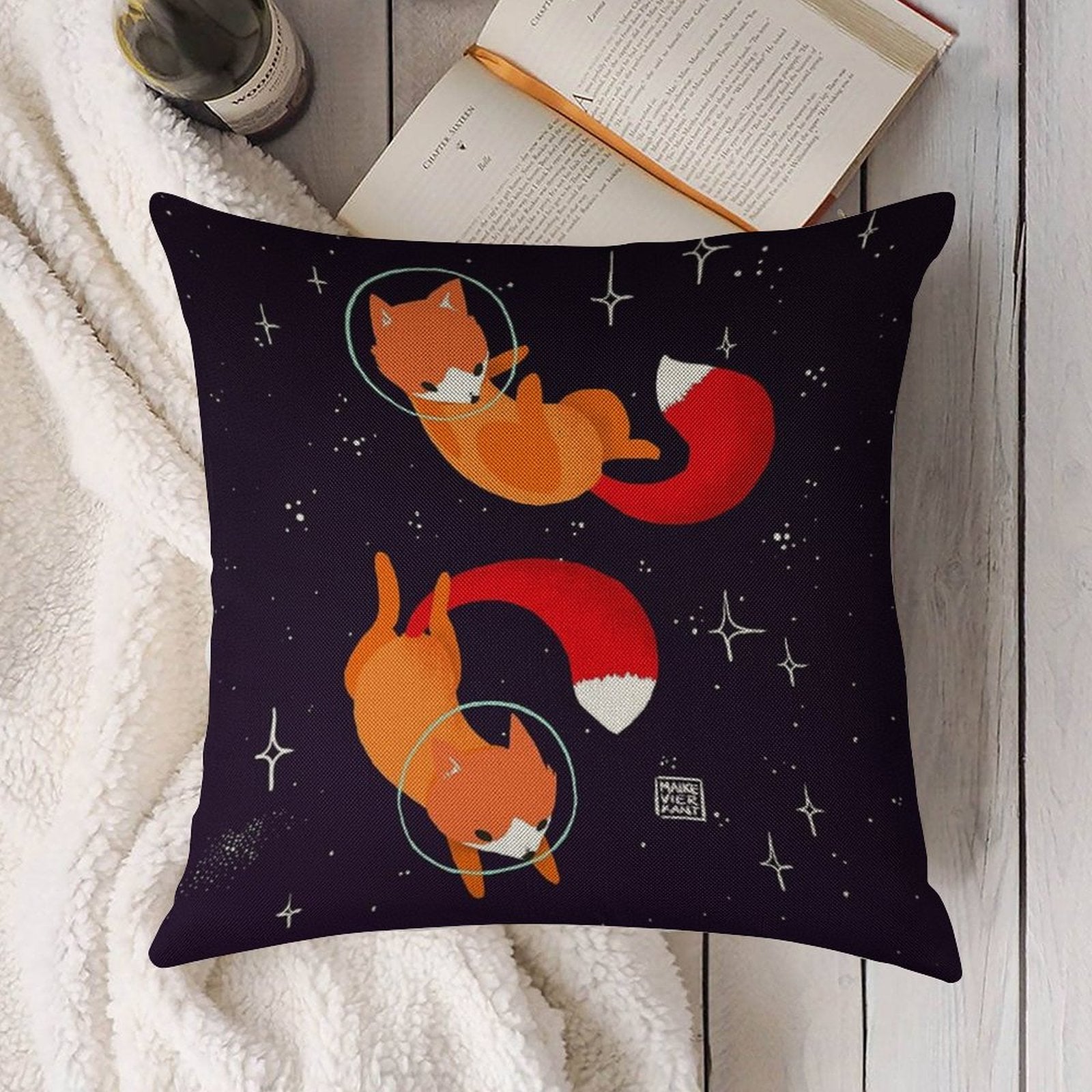 - Machine or hand washable (max 45°C). Avoid bleach and prolonged soaking to preserve the vibrant texture of your Space Foxes Luxury Pillow Cover.