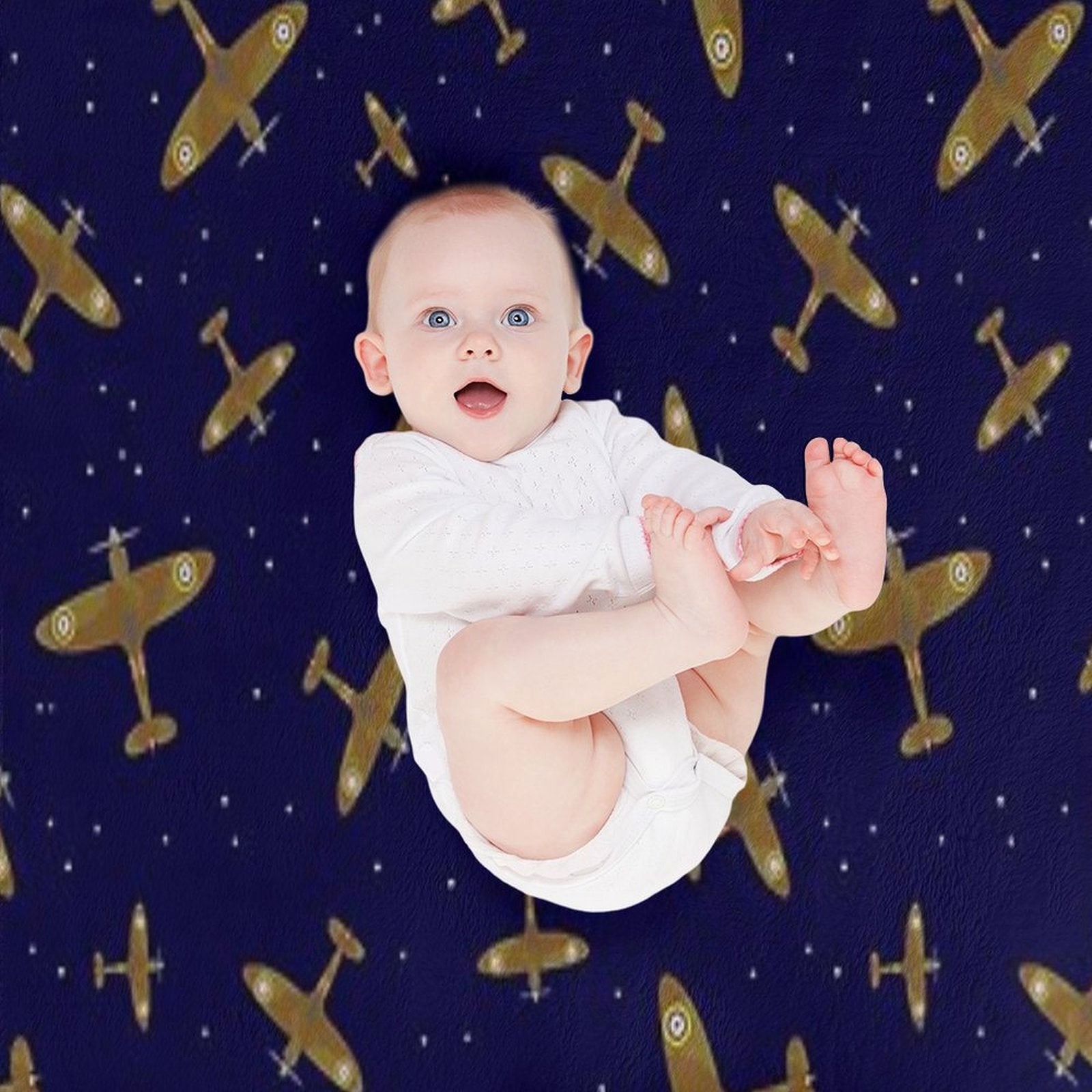- Luxuriously plush texture mimics the feel of velvet, making it ideal for Spitfire War Planes in Flight on Navy Blue travelers or sensitive skin.