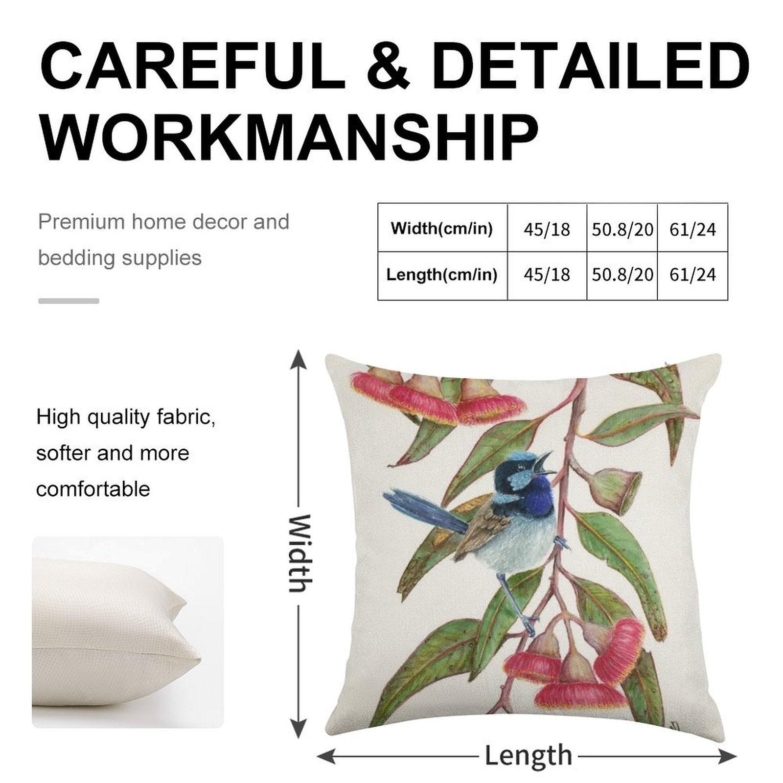- Double-Stitched Edges: Precision stitching prevents fraying, stretching, and pilling, ensuring your Splendid Fairywren in Silver Princess Linen Throw Pillow Cover stays pristine through countless uses.