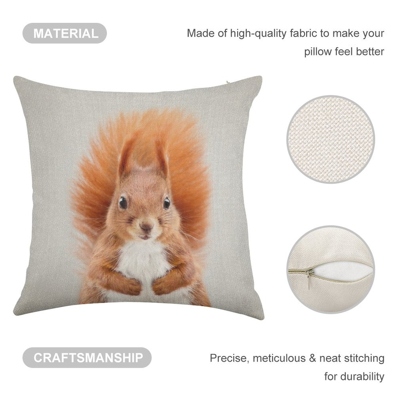 - Double-Stitched Edges: Precision stitching prevents fraying, stretching, and pilling, ensuring your Squirrel 2 - Colorful Linen Throw Pillow Cover stays pristine through countless uses.