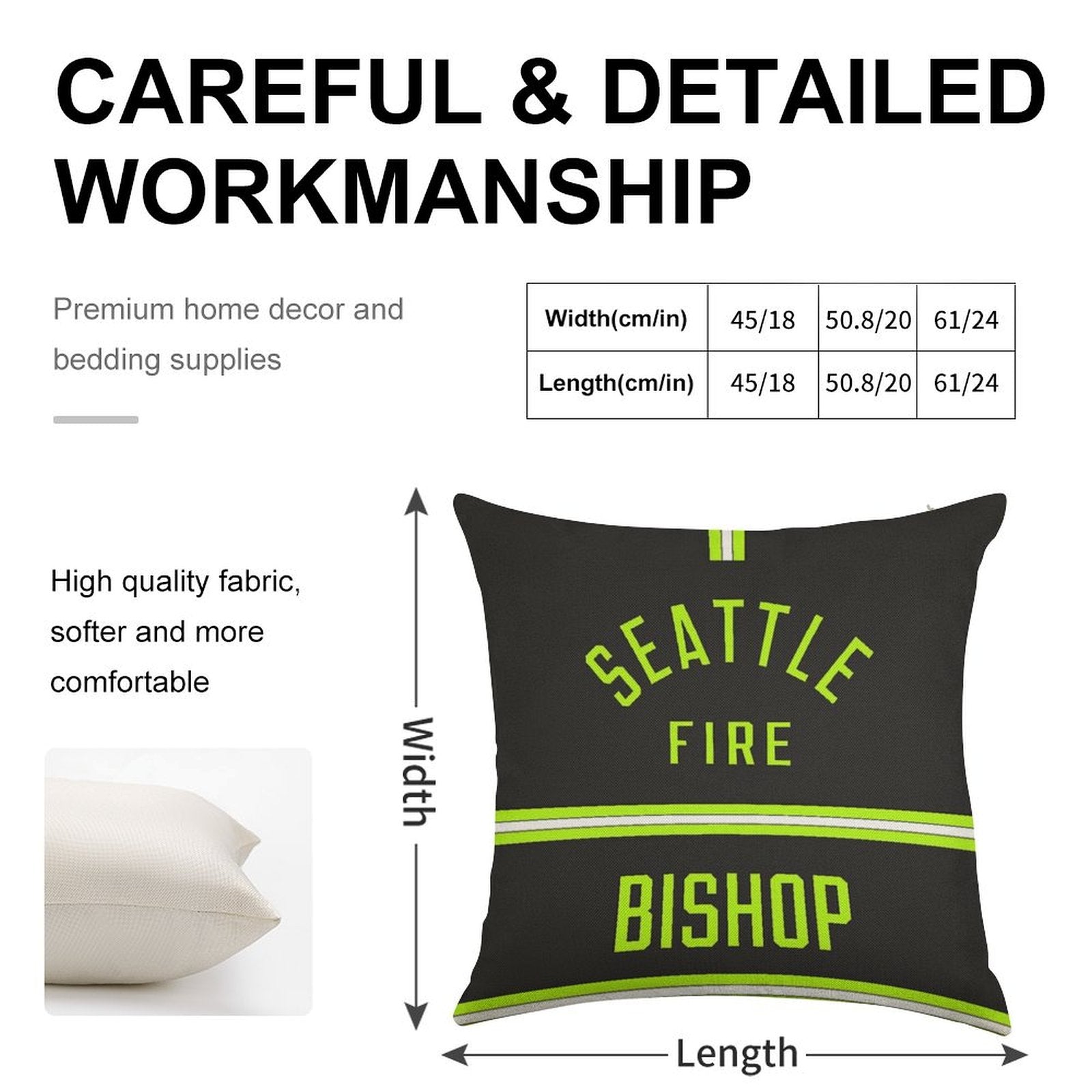 - Machine or hand washable (max 45°C). Avoid bleach and prolonged soaking to preserve the vibrant texture of your Station 19 - Seattle Fire Bishop Turnouts Pillow Luxury Pillow Cover.