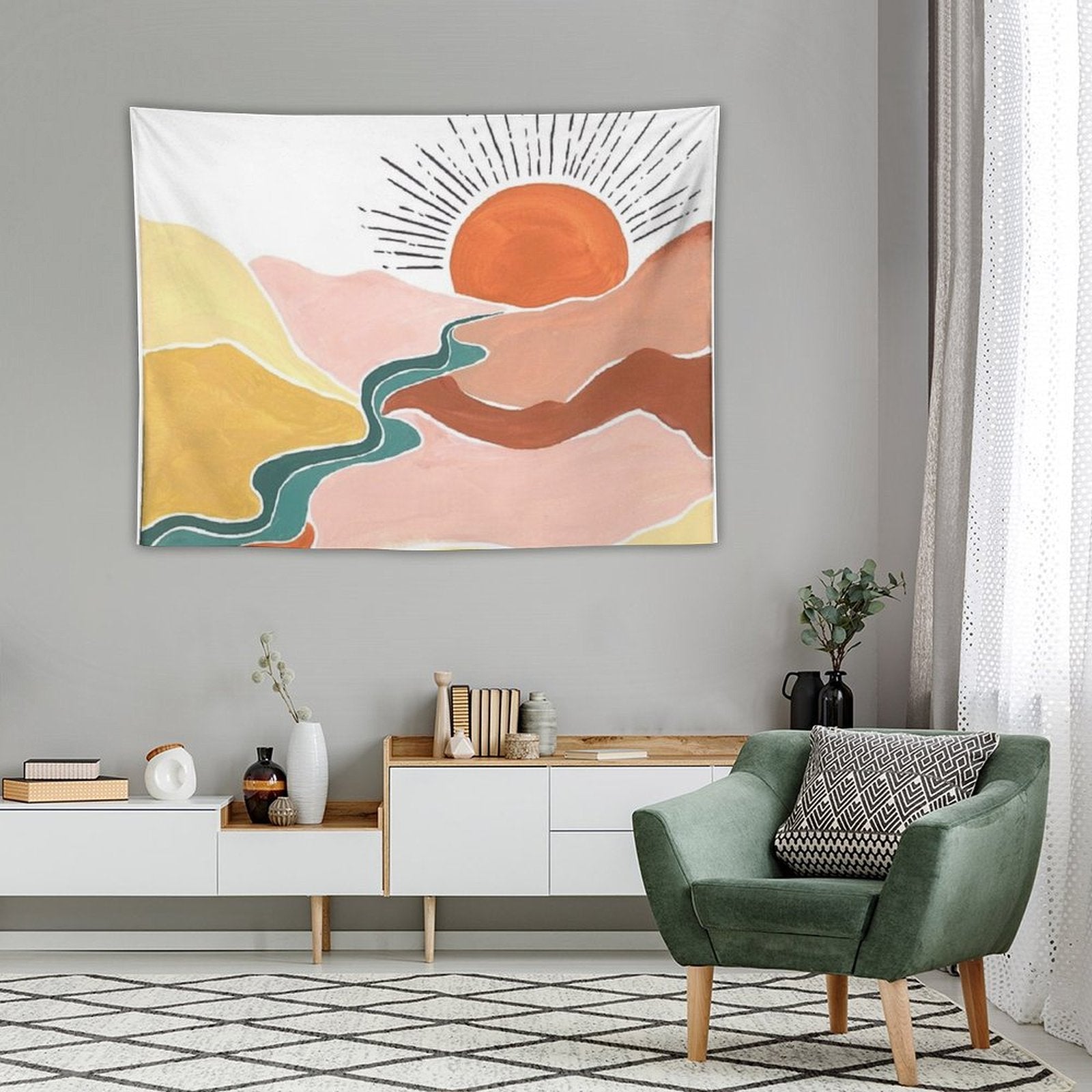BionZax's Sunrise Over Valley Tapestry for Bedroom, College Dorm. Sunrise Over Valley Tapestry to decorate your bedroom, college dorm, living room, or kitchen wall, it is the best gift for funny, meme, aesthetic, trendy, simple, fashion, music, abstract, fantasy, modern tapestry for girls, men, boys, teen, women, kids.