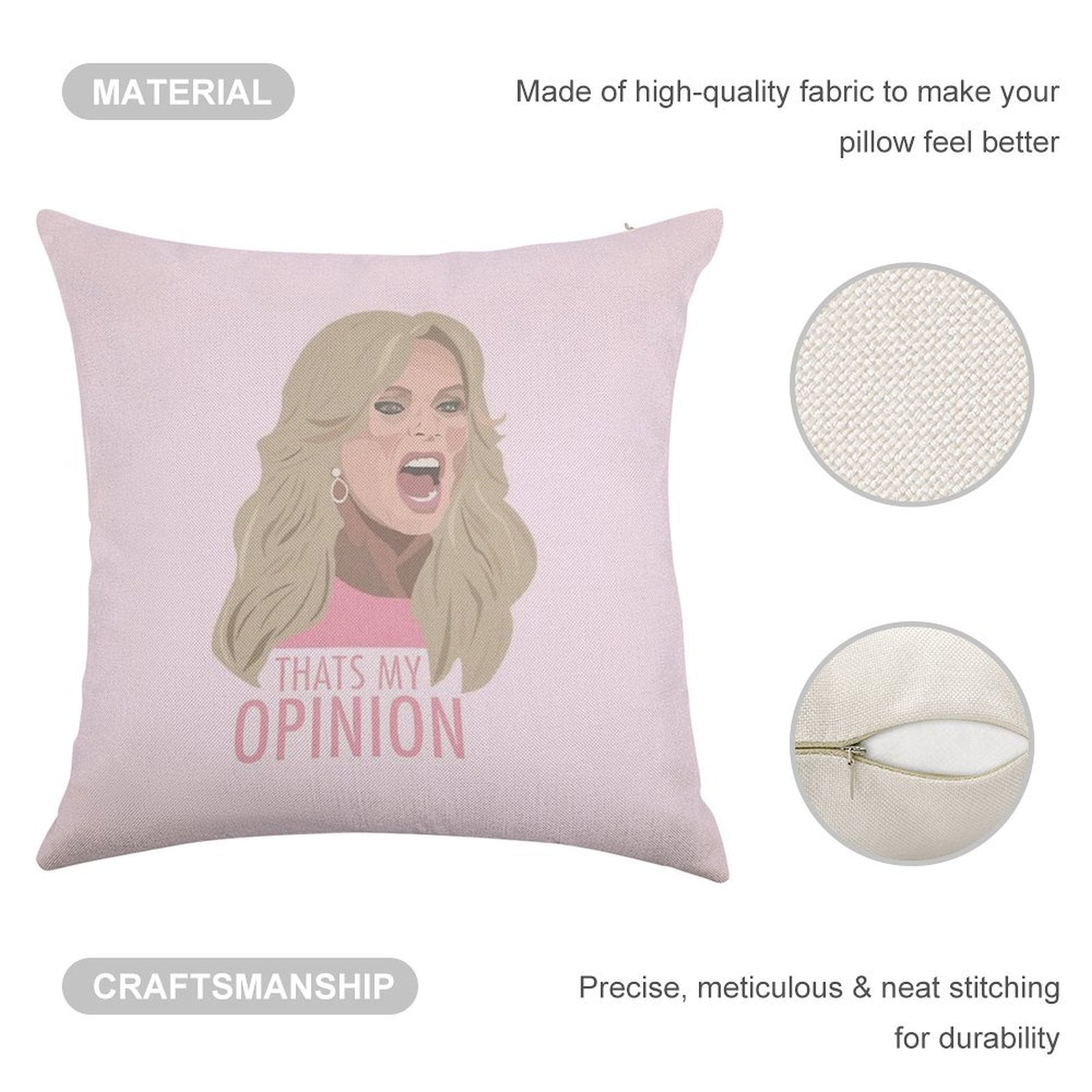 - Double-Stitched Edges: Precision stitching prevents fraying, stretching, and pilling, ensuring your Tamra Judge Thats My Opinion Linen Throw Pillow Cover stays pristine through countless uses.
