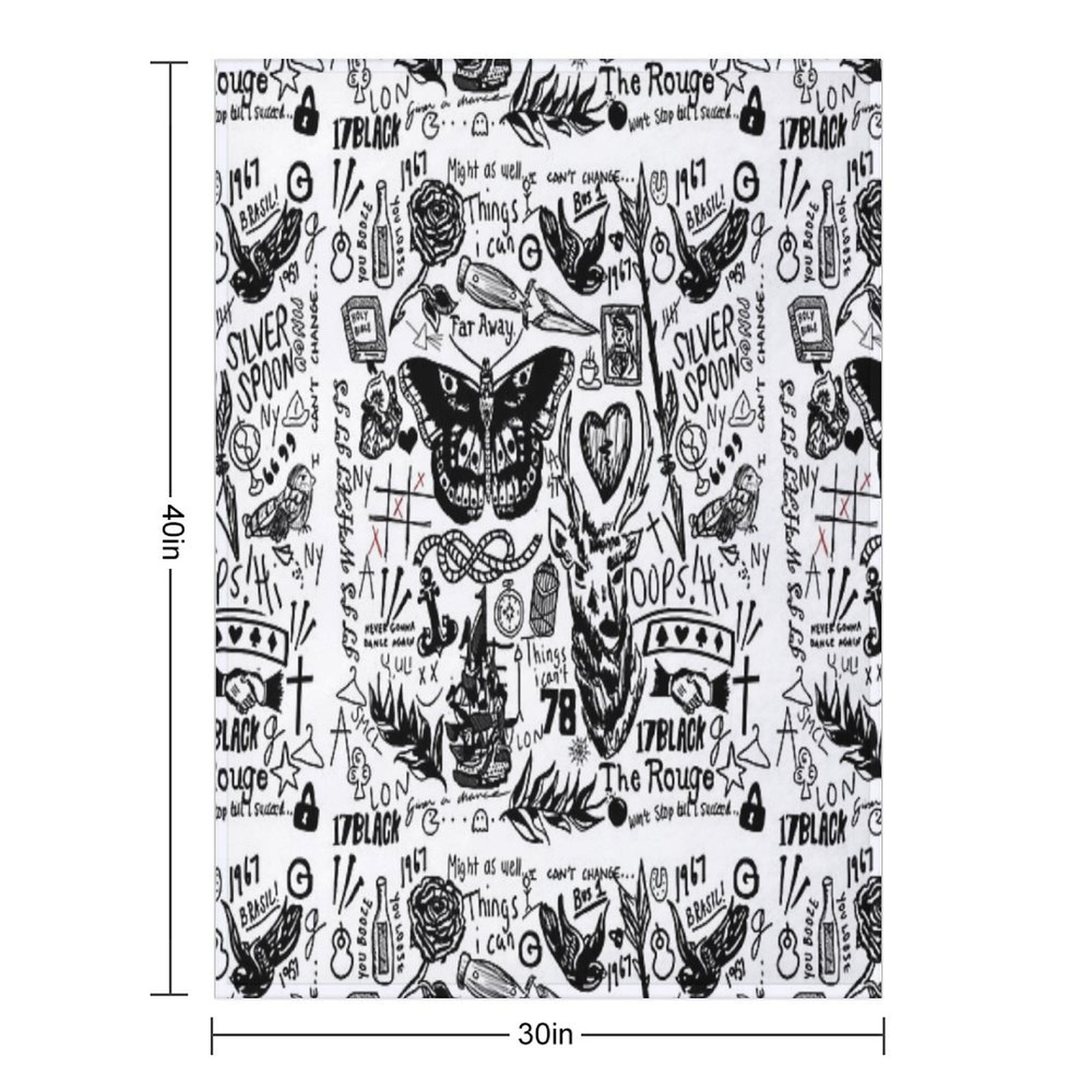 Tattoos Collage Blanket Size Chart: