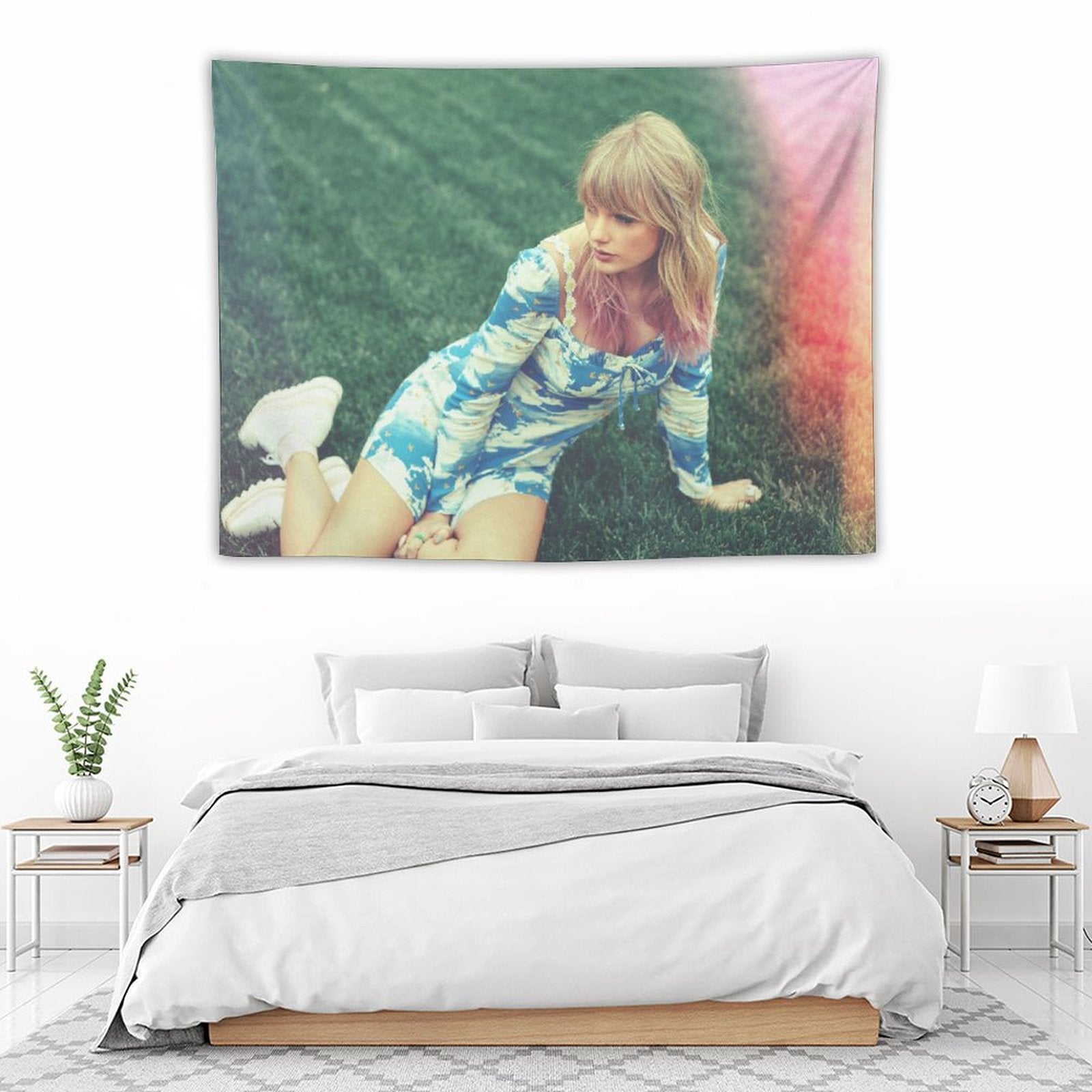 💕【ACCESSORY STRUCTURE】 "Taylor at Lawn Aesthetic Tapestry" (lock edge), with 2 barb clips and 3 no trace nail hooks, the two ends of the wall blanket can be fixed on the wall, convenient installation, will not destroy the wall.