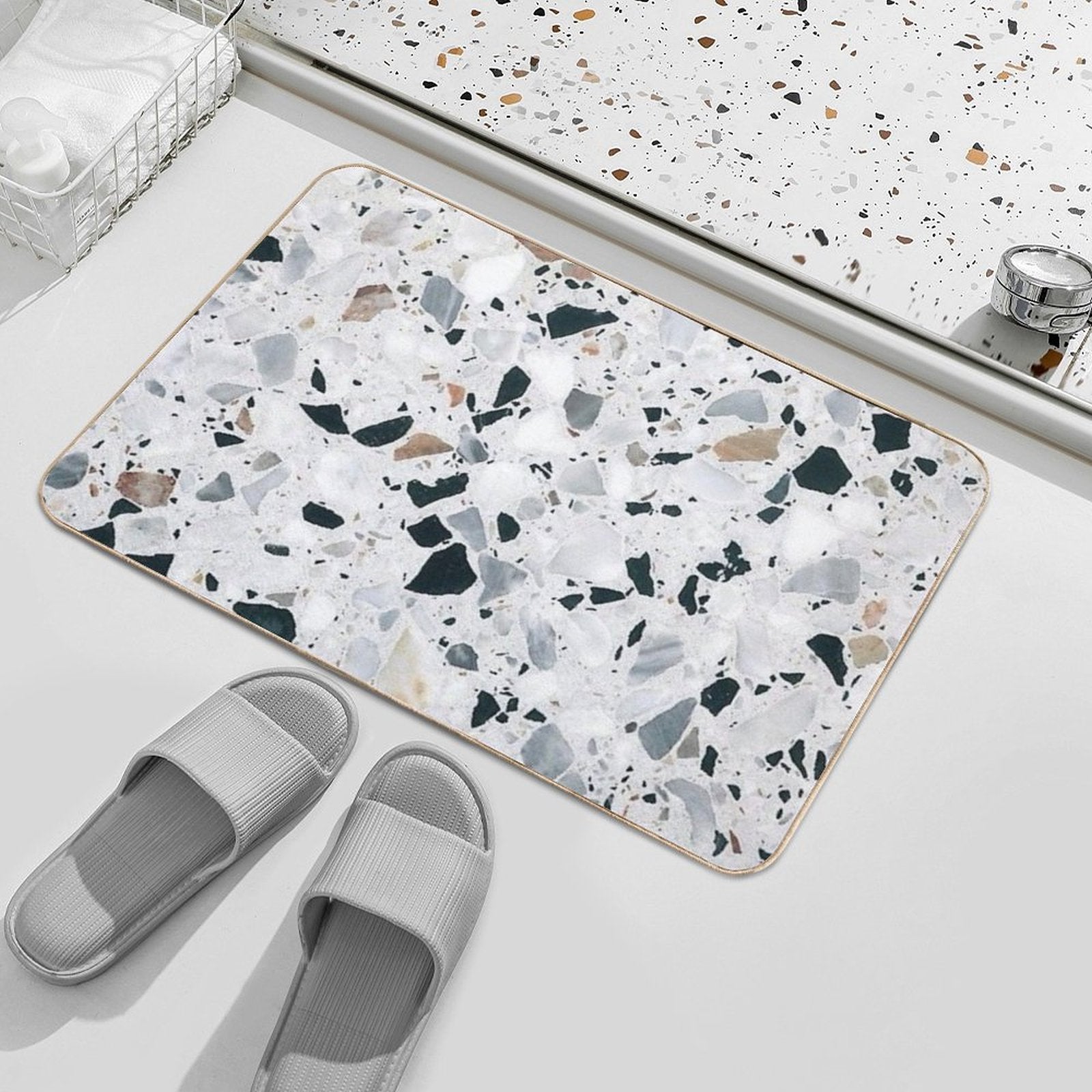 Terrazzo Black, White, Grey And Bronze Bath Mat