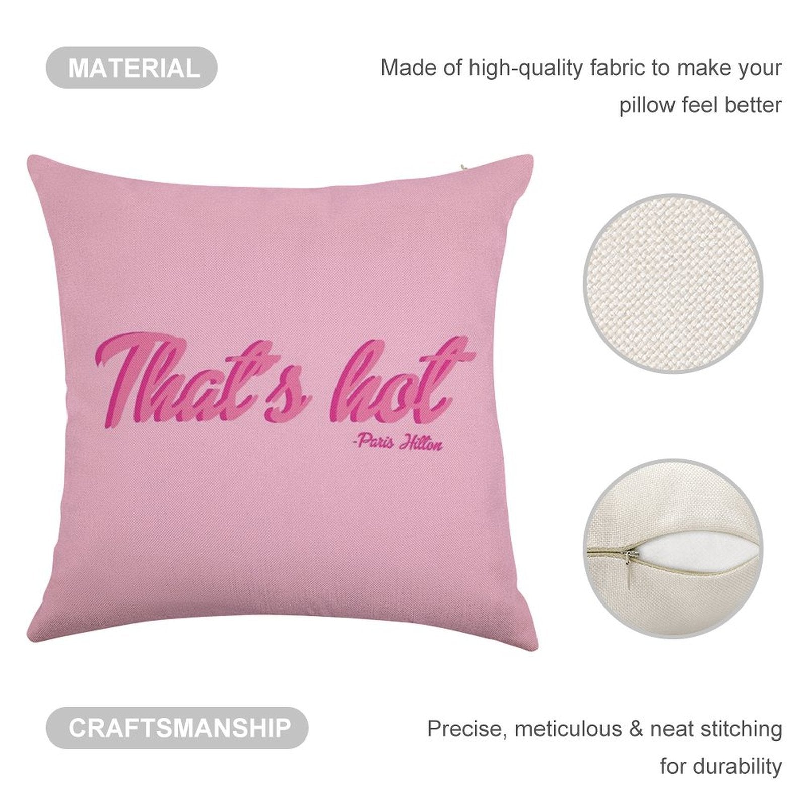 - Double-Stitched Edges: Precision stitching prevents fraying, stretching, and pilling, ensuring your That's Hot Paris Hilton Text Print Linen Throw Pillow Cover stays pristine through countless uses.