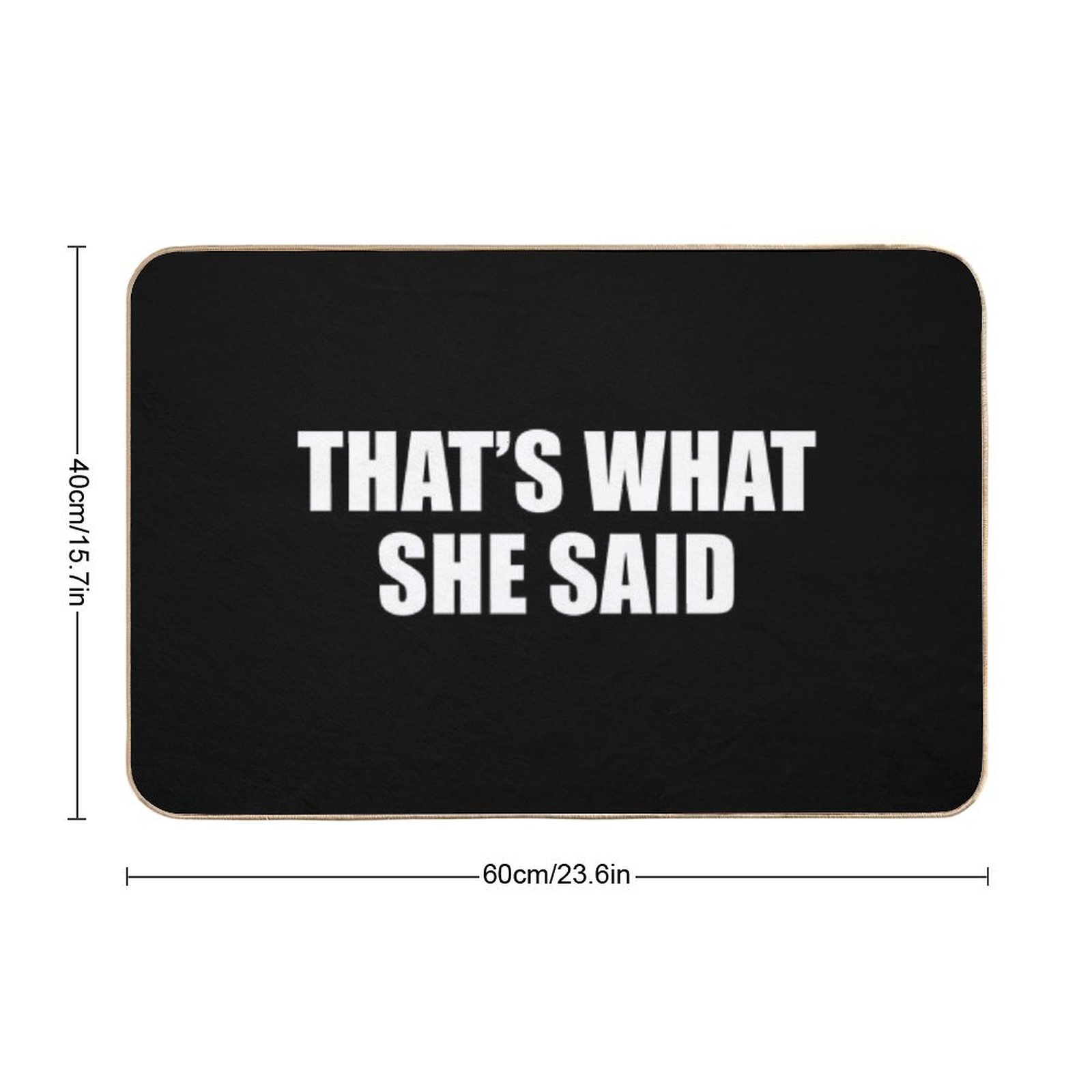 - Use as a vanity rug, guest suite accent, or mudroom defender – the That's What She Said - Michael Scott (Black) Mat adapts to any space.