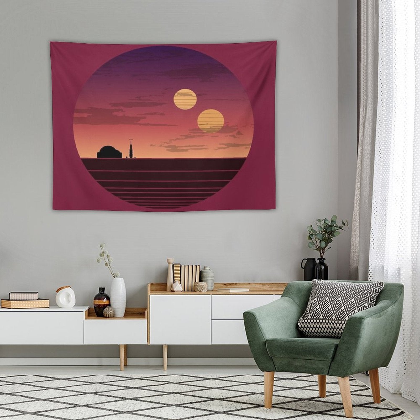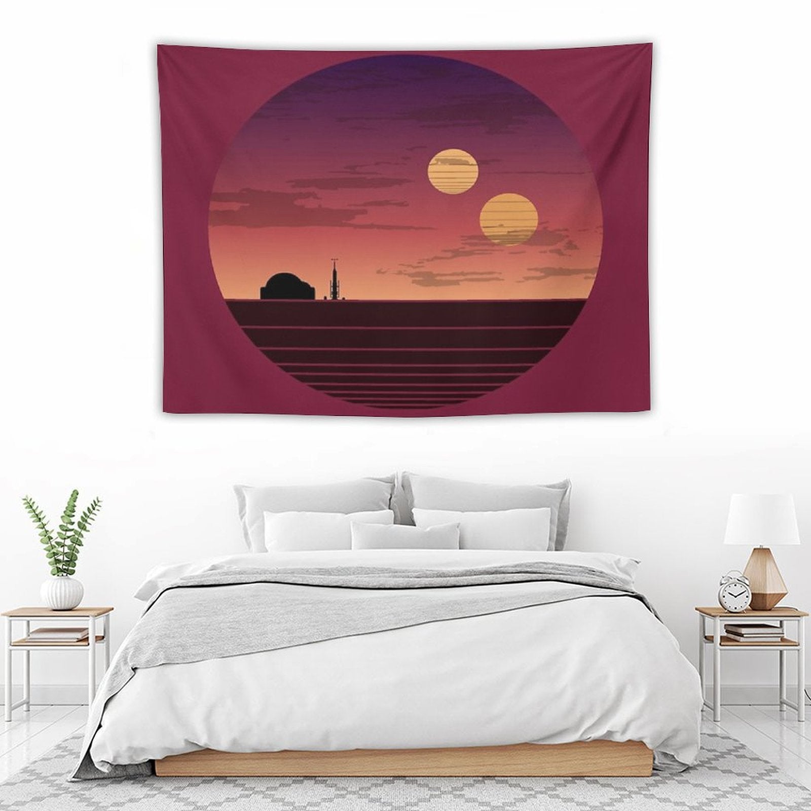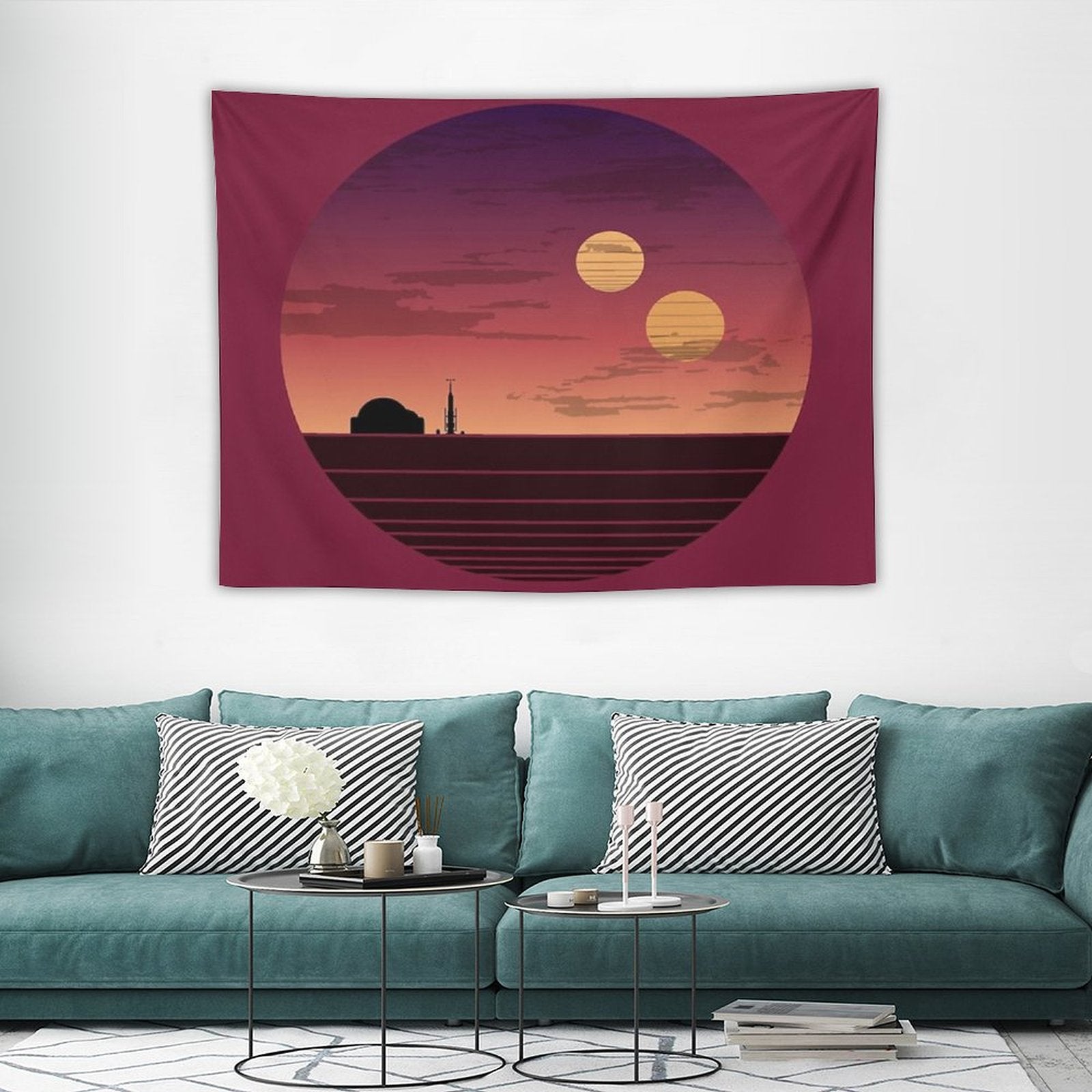 💓【MULTI-FUNCTION】 Used "The Binary Sunset Tapestry" to decorate your bedroom, college dorm, room, living room, kitchen wall, can be used as tapestry or wall hanging, bedspread, tablecloth, dormitory decoration, beach shawl, tablecloth, etc.