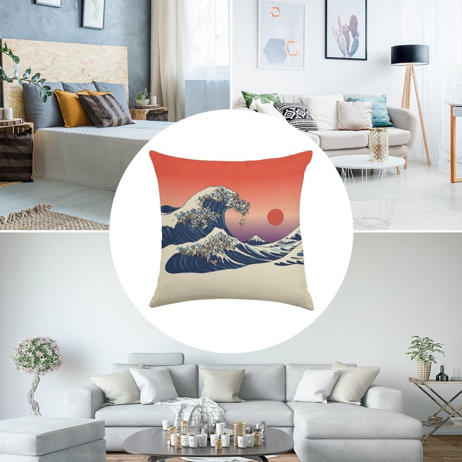 - Machine or hand washable (max 45°C). Avoid bleach and prolonged soaking to preserve the vibrant texture of your The Great Wave of Pug Luxury Pillow Cover.