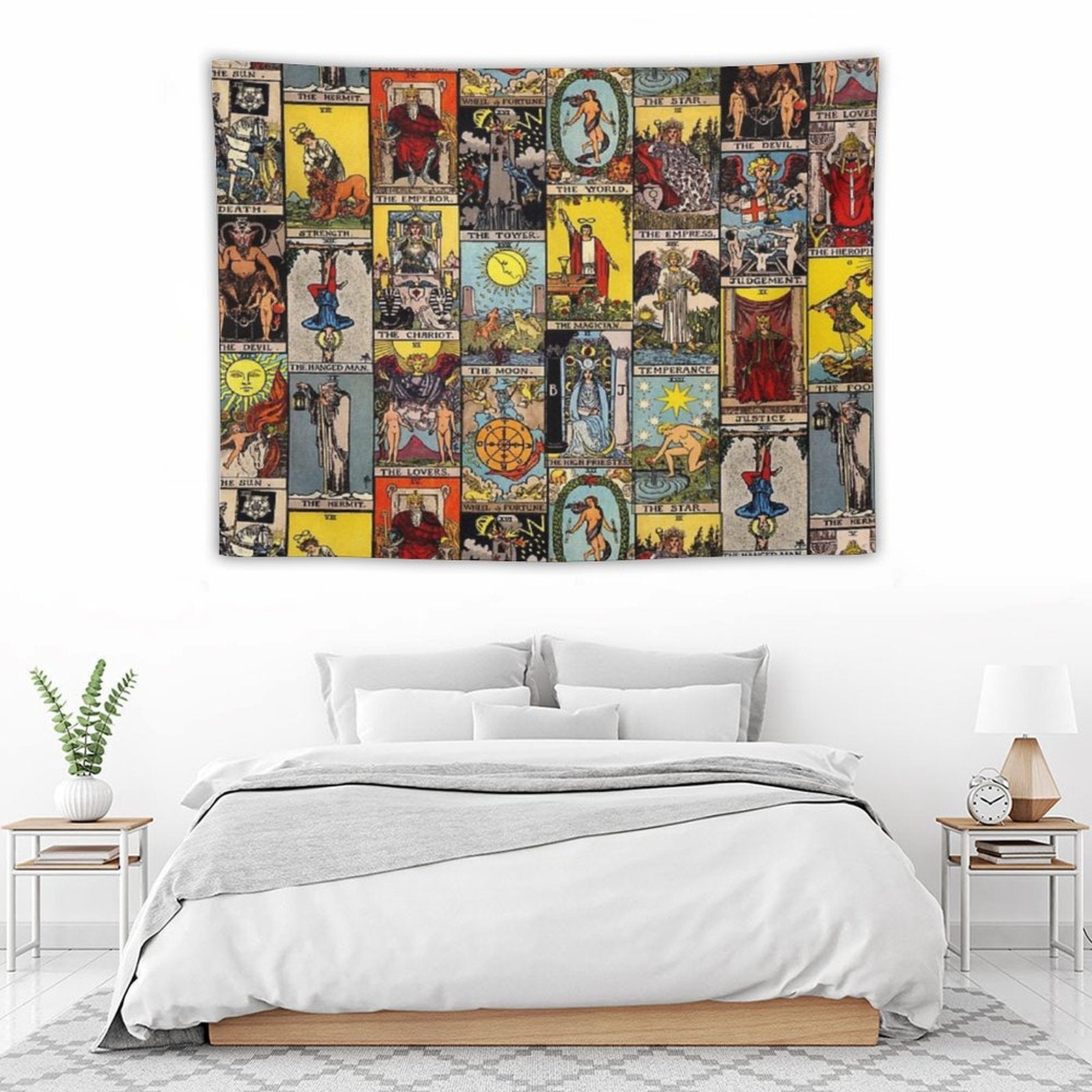 💓【MULTI-FUNCTION】 Used "The Major Arcana of Tarot Tapestry" to decorate your bedroom, college dorm, room, living room, kitchen wall, can be used as tapestry or wall hanging, bedspread, tablecloth, dormitory decoration, beach shawl, tablecloth, etc.