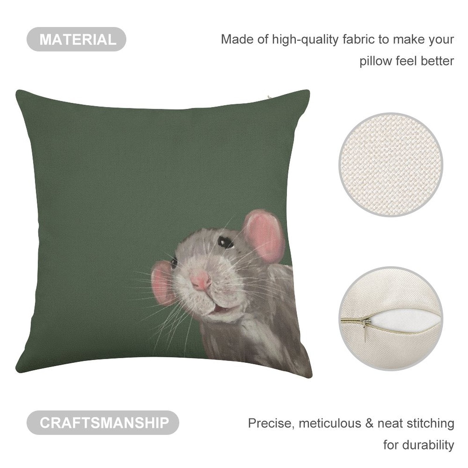 - Double-Stitched Edges: Precision stitching prevents fraying, stretching, and pilling, ensuring your The Peeking Rat (Green) Linen Throw Pillow Cover stays pristine through countless uses.
