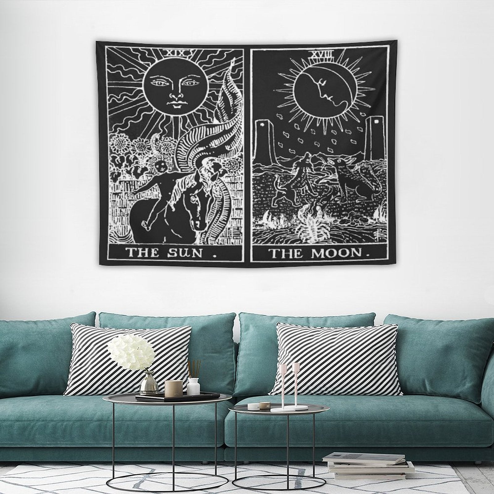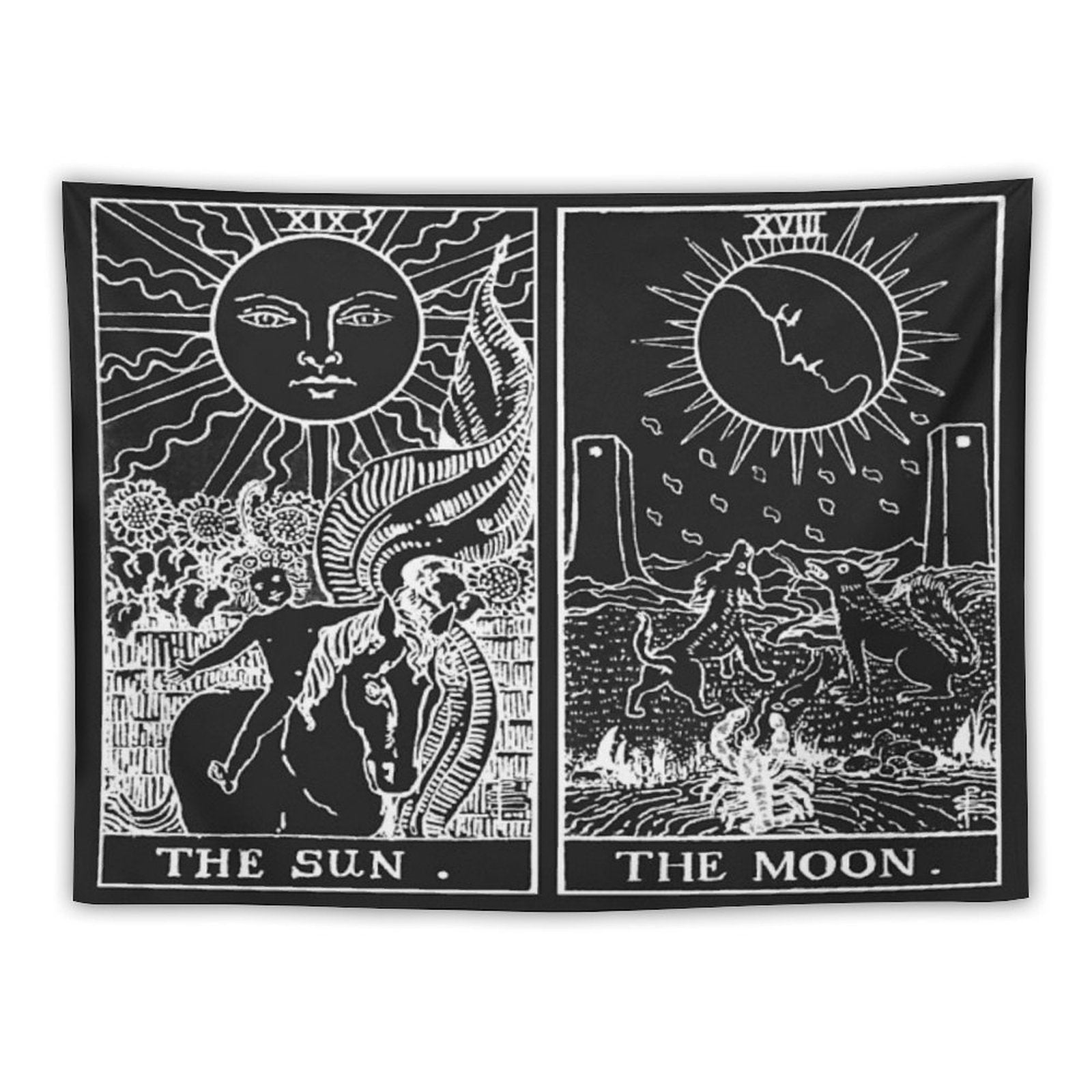💓【MULTI-FUNCTION】 Used "The Sun And Moon Tarot Cards Pearl & Obsidian Tapestry" to decorate your bedroom, college dorm, room, living room, kitchen wall, can be used as tapestry or wall hanging, bedspread, tablecloth, dormitory decoration, beach shawl, tablecloth, etc.