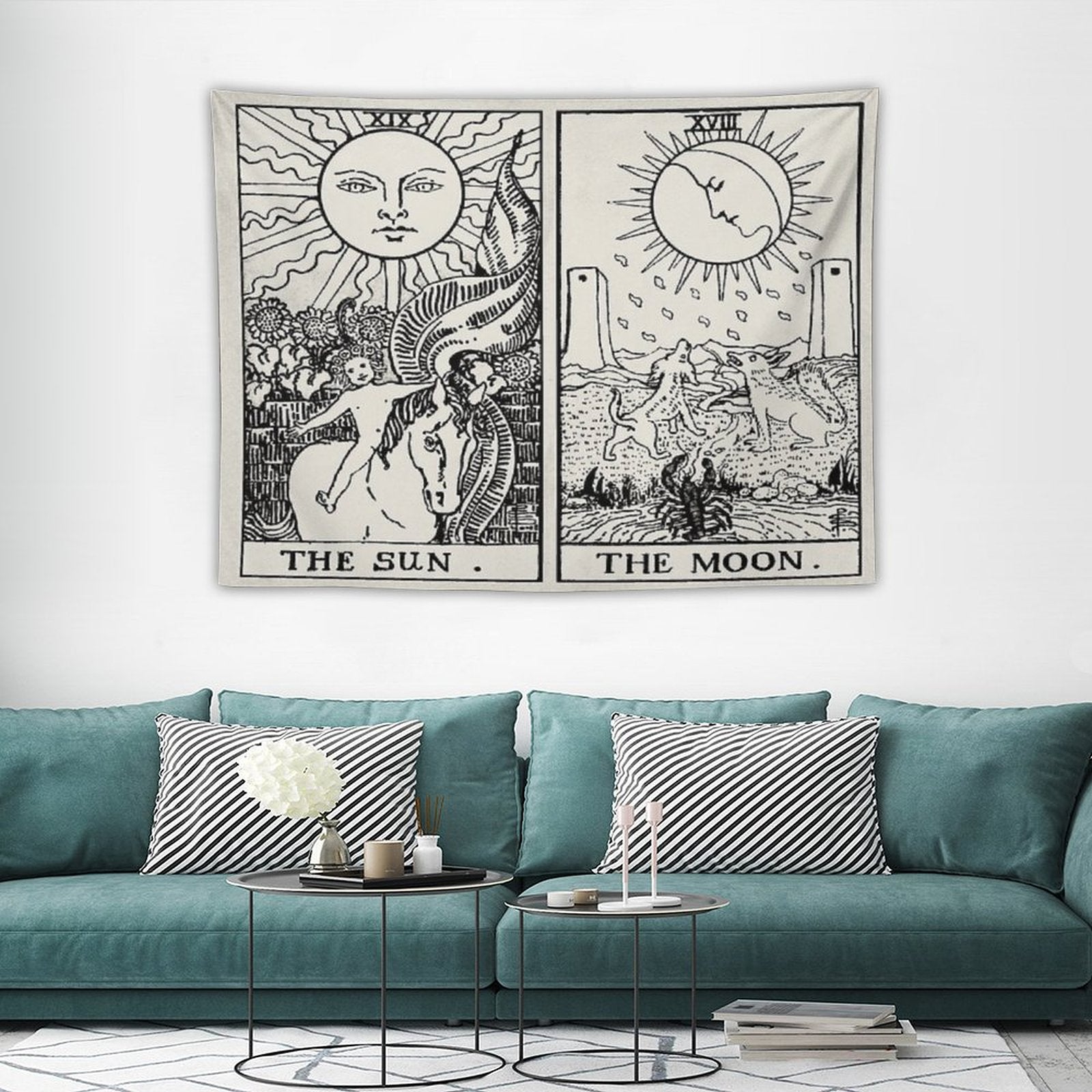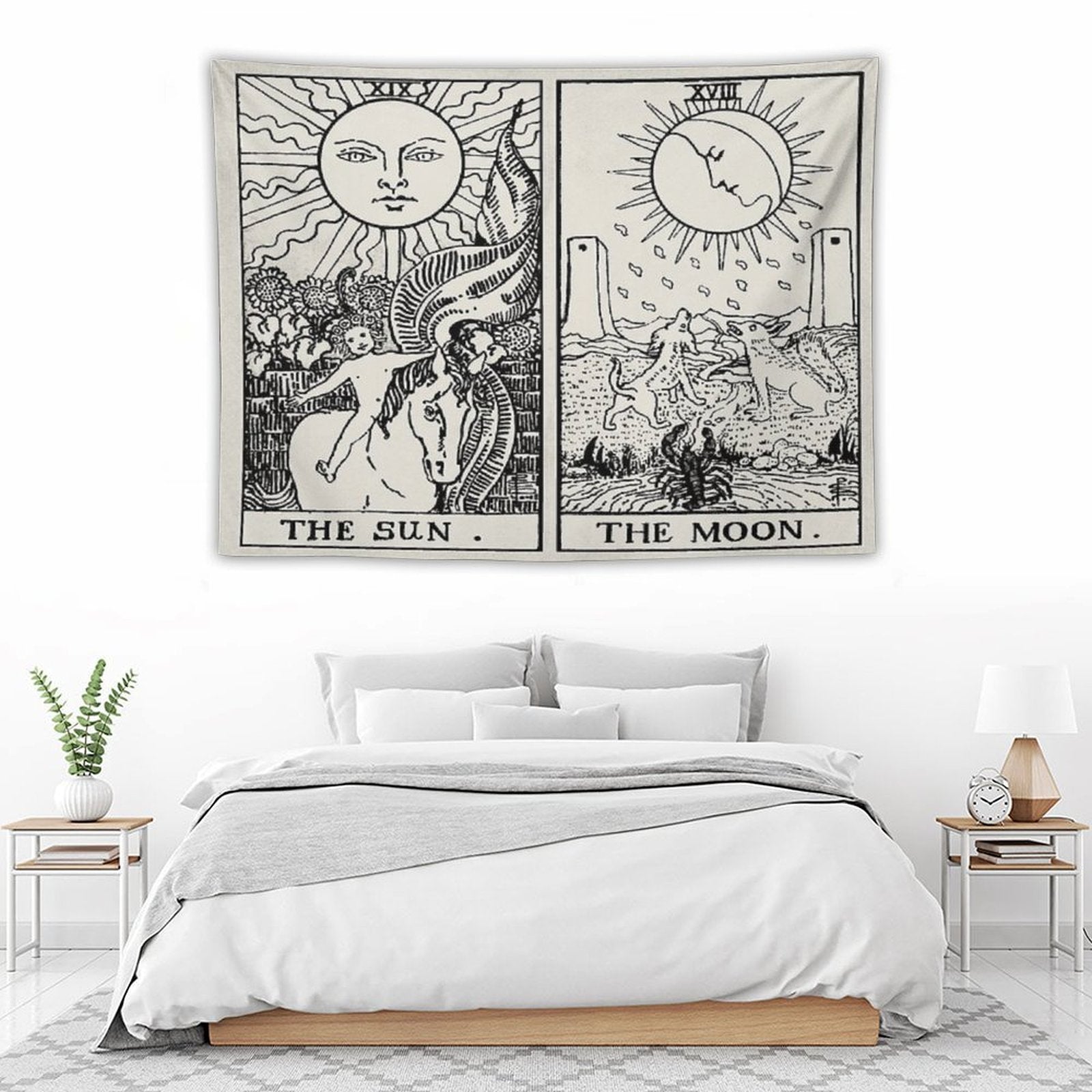 💓【MULTI-FUNCTION】 Used "The Sun And Moon Tarot Cards Tapestry" to decorate your bedroom, college dorm, room, living room, kitchen wall, can be used as tapestry or wall hanging, bedspread, tablecloth, dormitory decoration, beach shawl, tablecloth, etc.