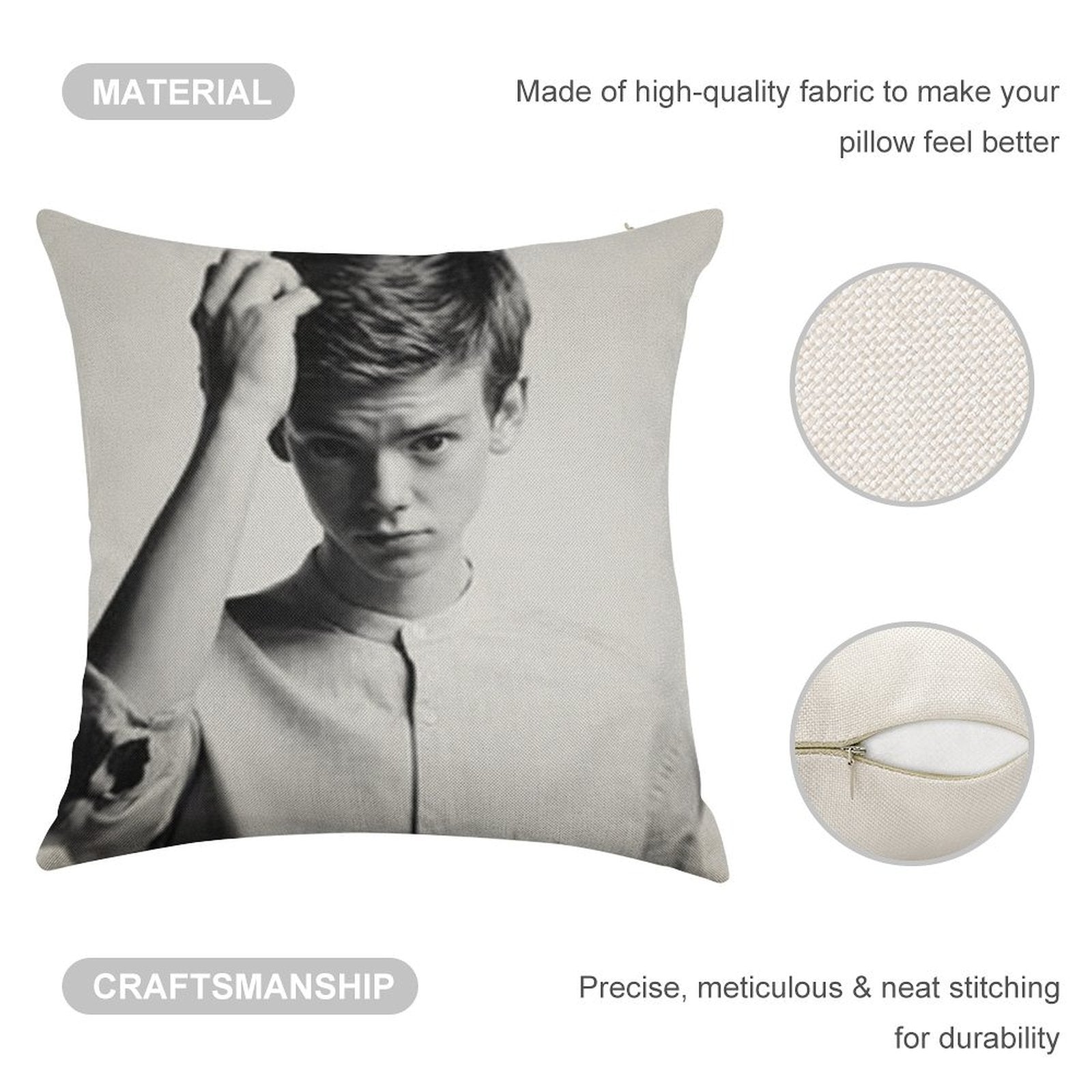 - Double-Stitched Edges: Precision stitching prevents fraying, stretching, and pilling, ensuring your Thomas Brodie-Sangster 9 Linen Throw Pillow Cover stays pristine through countless uses.