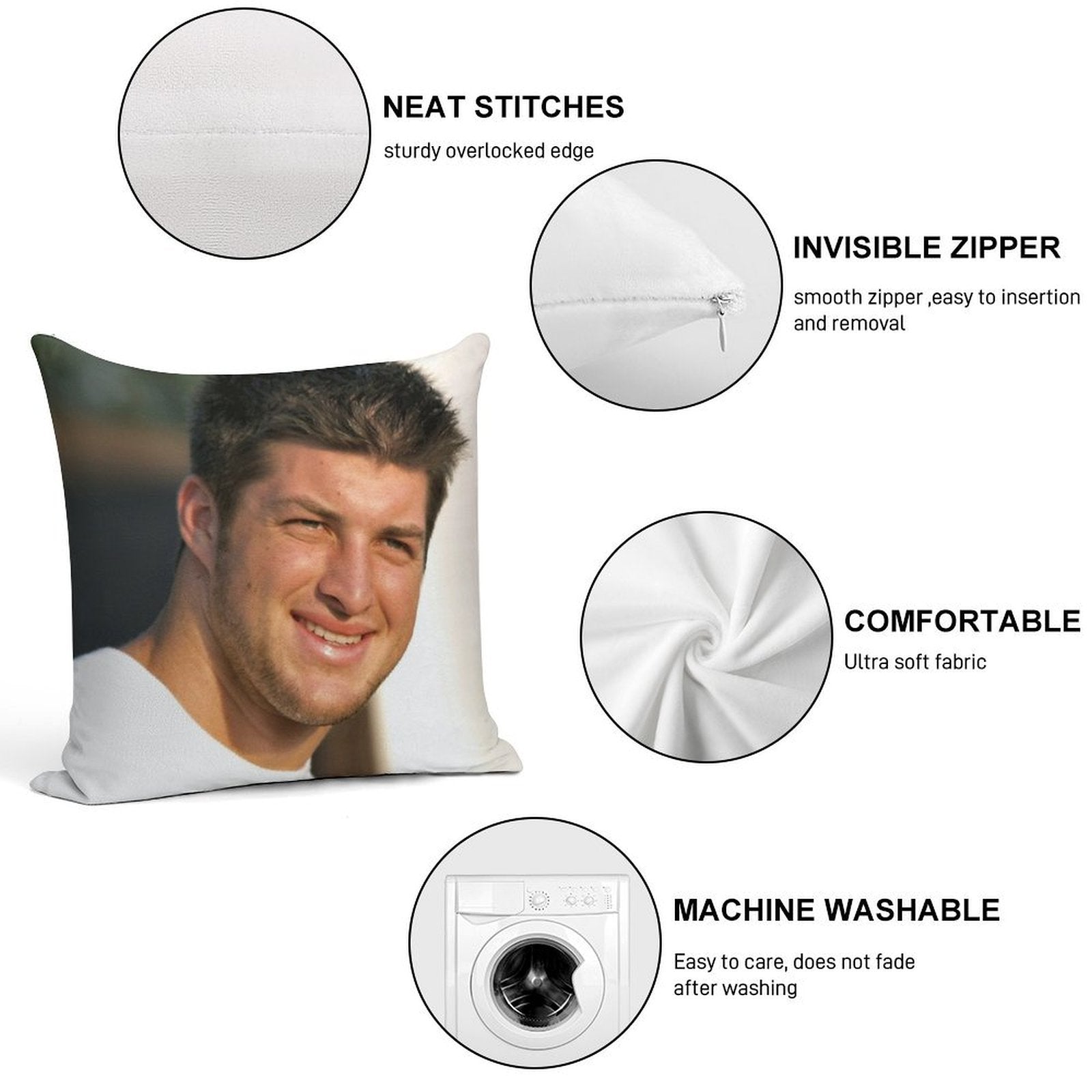Tim Tebow Soft Hidden Zipper Throw Pillow