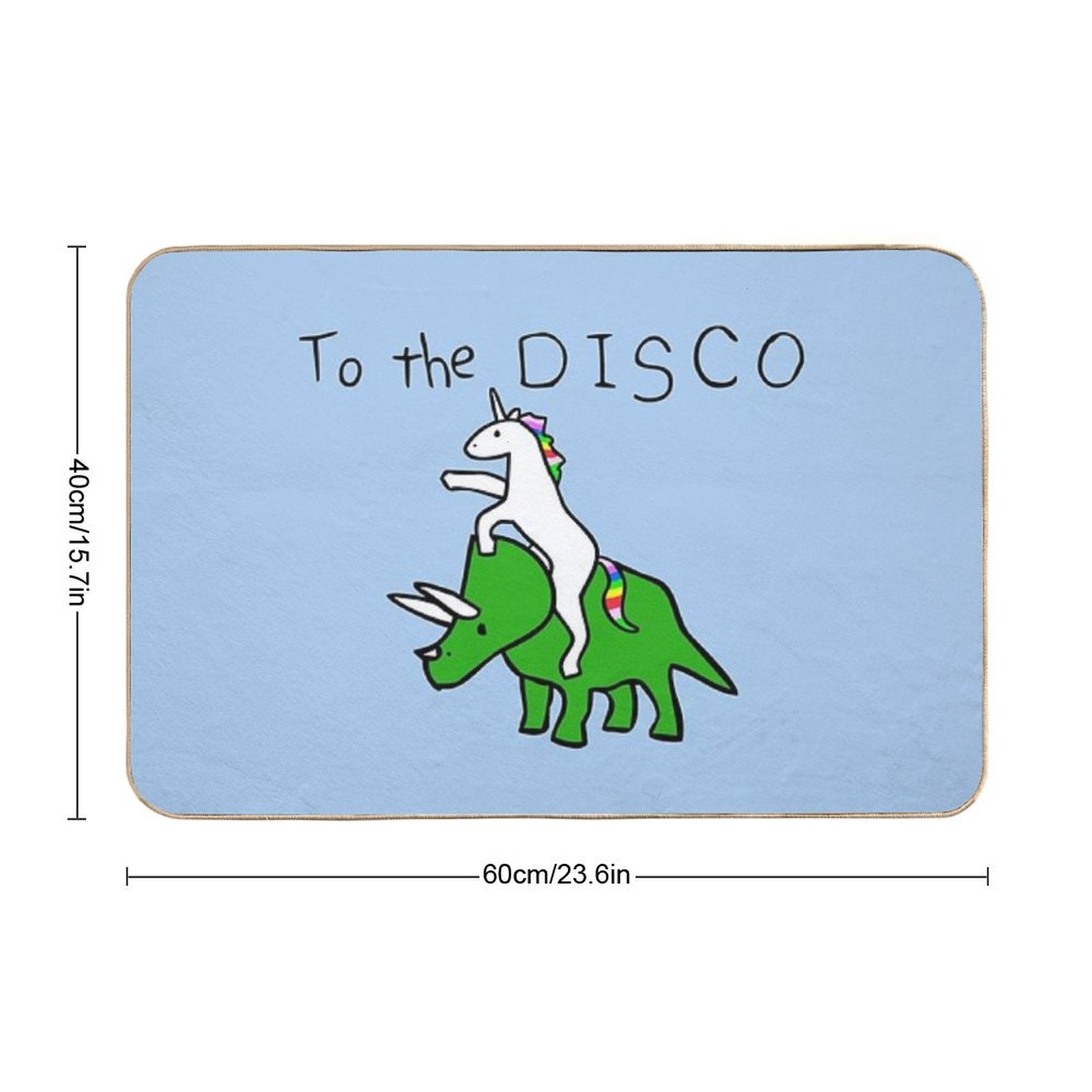 - Use as a vanity rug, guest suite accent, or mudroom defender – the To The Disco (Unicorn Riding Triceratops) Mat adapts to any space.