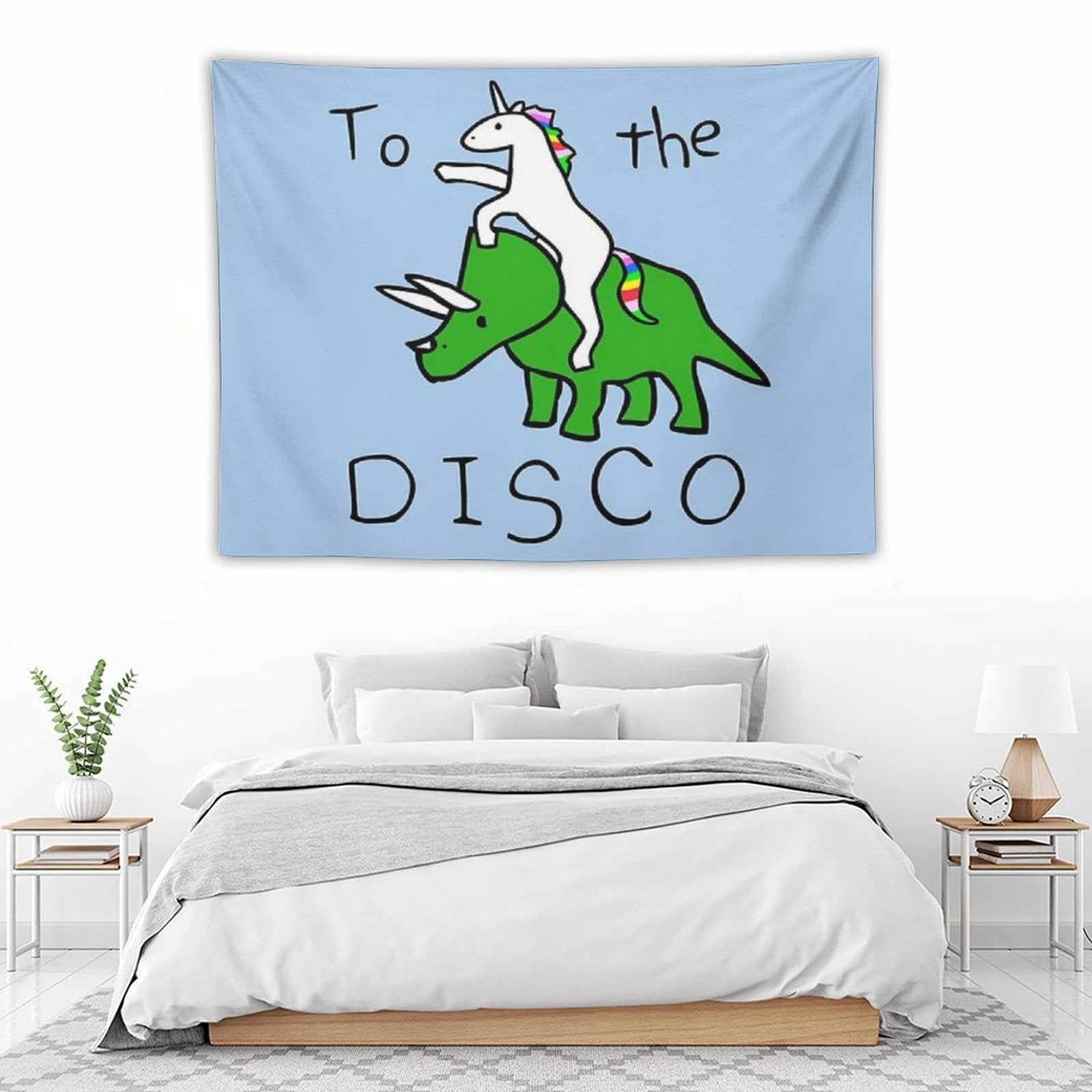 💓【MULTI-FUNCTION】 Used "To The Disco (Unicorn Riding Triceratops) Tapestry" to decorate your bedroom, college dorm, room, living room, kitchen wall, can be used as tapestry or wall hanging, bedspread, tablecloth, dormitory decoration, beach shawl, tablecloth, etc.