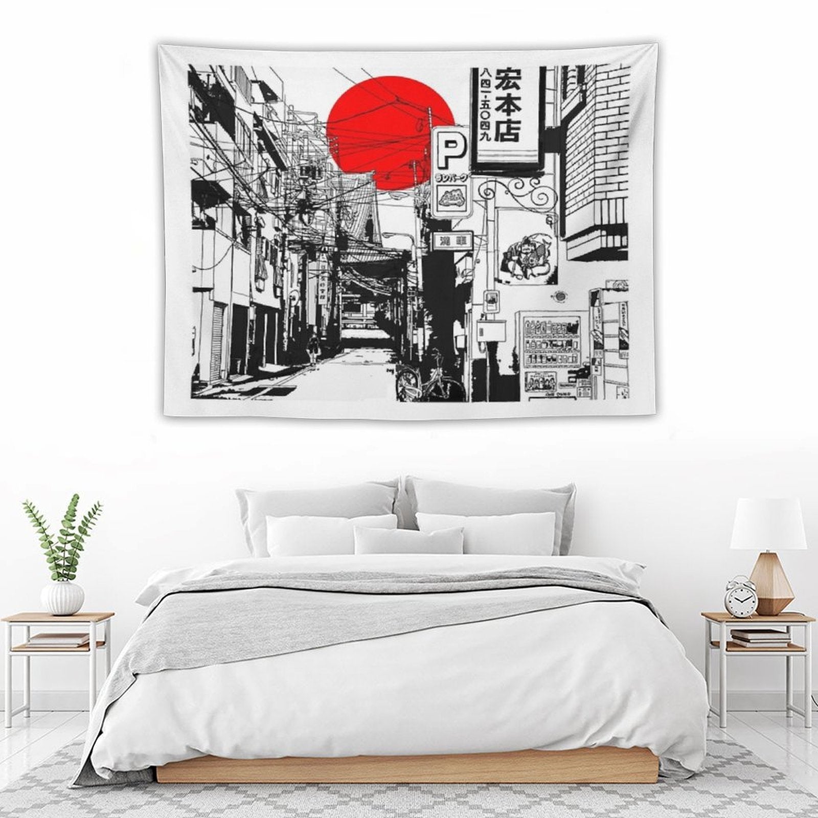 💕【ACCESSORY STRUCTURE】 "Tokyo Street Sunrise Tapestry" (lock edge), with 2 barb clips and 3 no trace nail hooks, the two ends of the wall blanket can be fixed on the wall, convenient installation, will not destroy the wall.