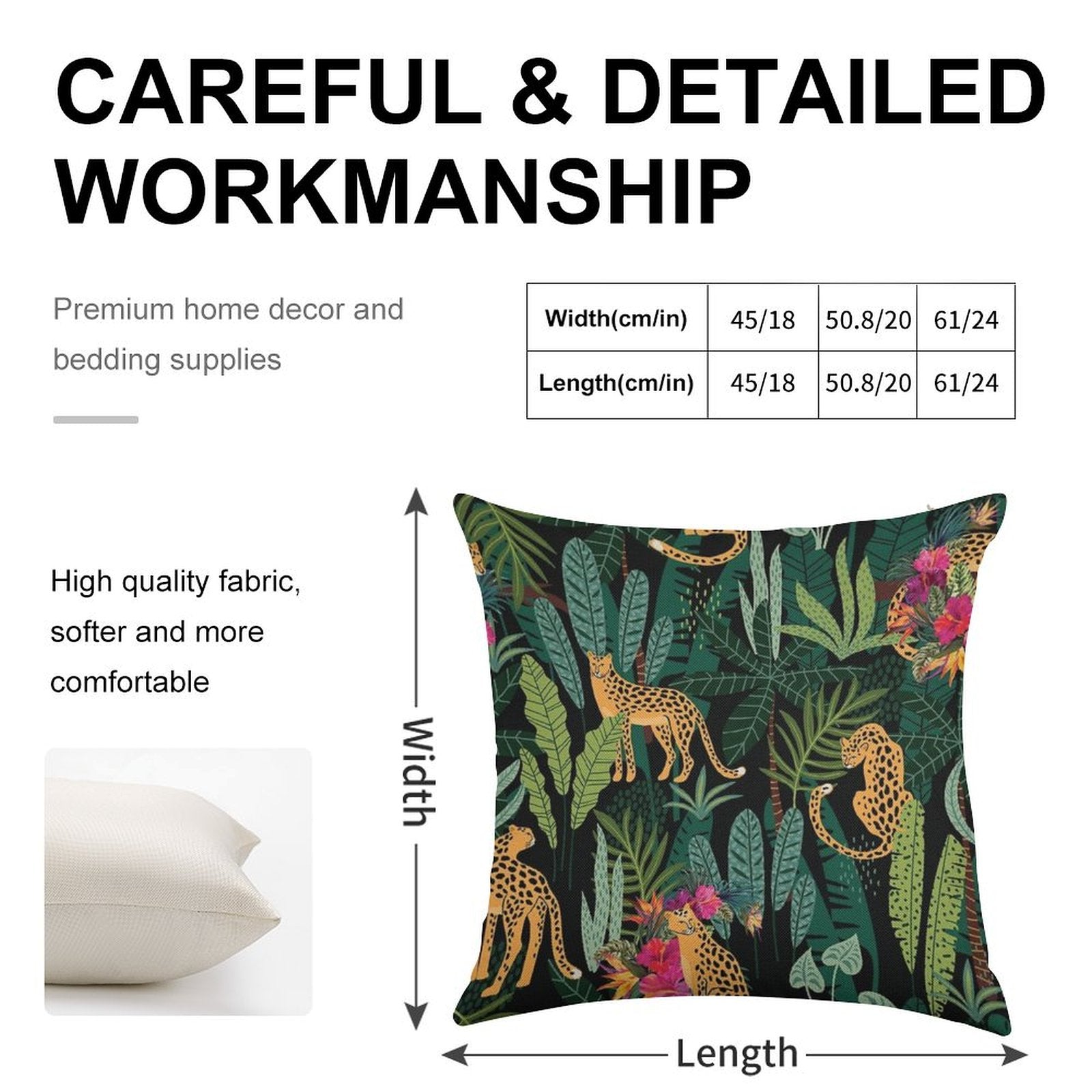 - Machine or hand washable (max 45°C). Avoid bleach and prolonged soaking to preserve the vibrant texture of your Tropical Cheetah Print Luxury Pillow Cover.
